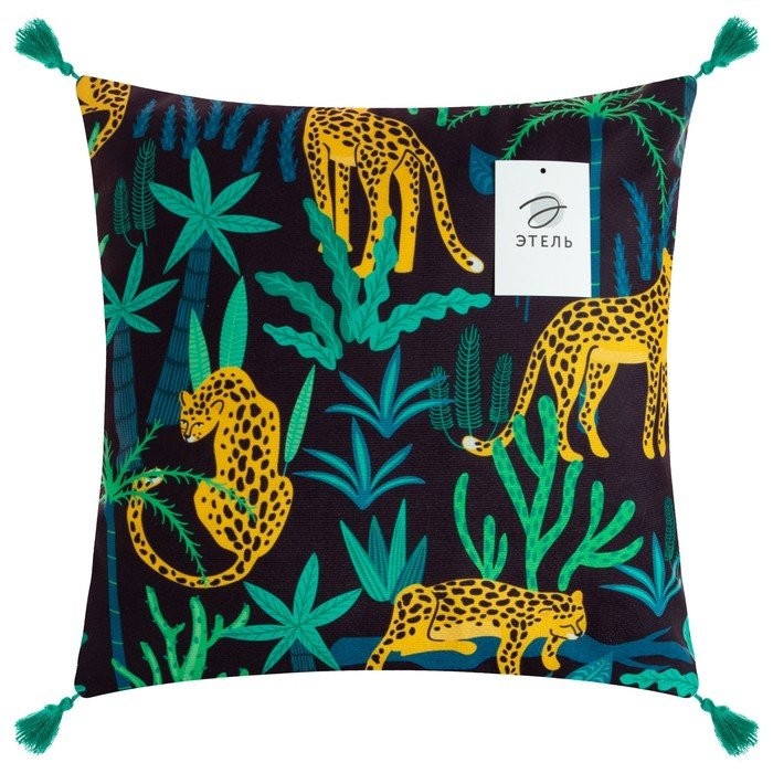 Наволочка на подушку с кисточками Этель «Леопарды», 43×43 см