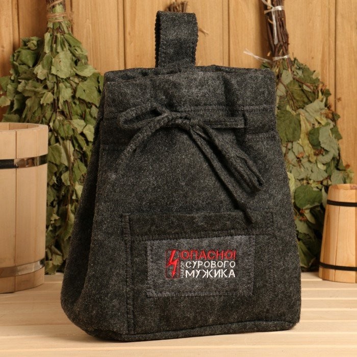 Набор для бани 4 предмета «Набор сурового мужика» шапка, коврик, рукавица, портфель