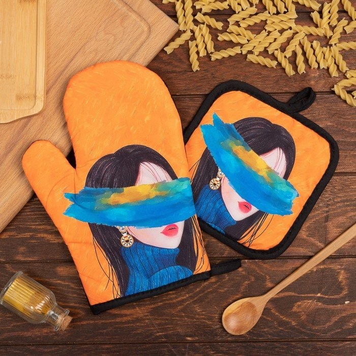 Кухонный набор (2 предмета) Этель «Искусство», прихватка 17×17 см, варежка 26×16 см, 100% п/э