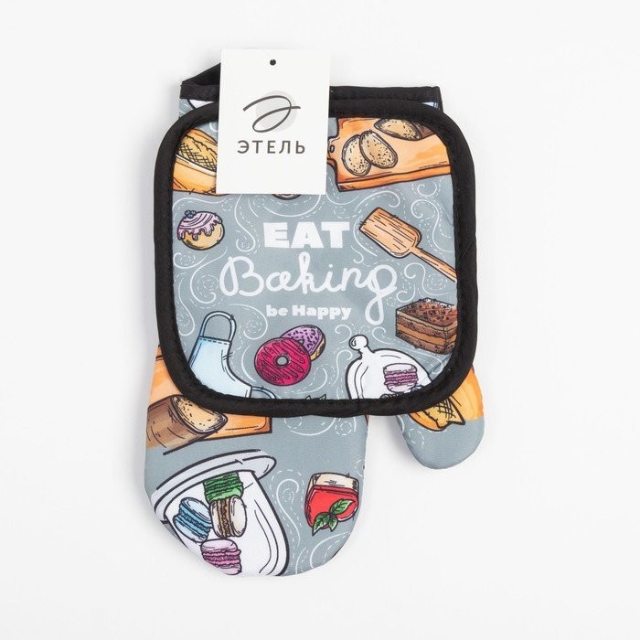 Кухонный набор (2 предмета) Этель Baking, прихватка 17×17 см, варежка 26×16 см, 100% п/э