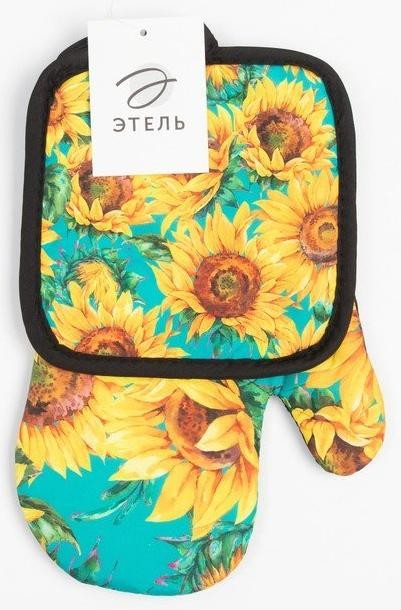 Кухонный набор (2 предмета) Этель «Подсолнухи», прихватка 17×17 см, варежка 26×16 см, 100% п/э