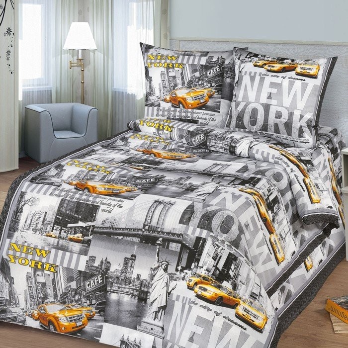 Постельное бельё 1,5сп Миланика Нью-Йорк 143х215см, 145х215см, 70х70см 2 шт, бязь 125г/м, хлопок 100%
