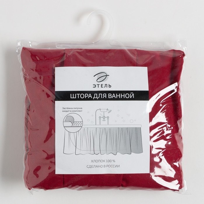 Штора для ванной «Этель» бордовый, 160×48 см, 100% хлопок