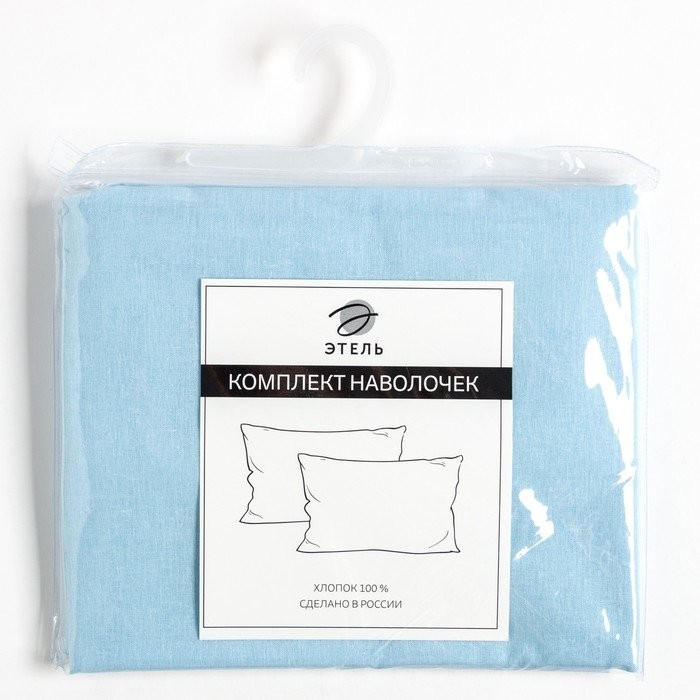 Комплект наволочек «Этель», 50×70 см — 2 шт, голубой, 100% хлопок, ранфорс
