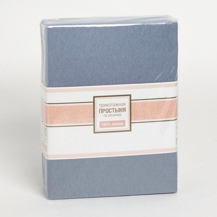 Трикотажная простынь на резинке 160х200х25см серый кулирка, 120г/м хл100%