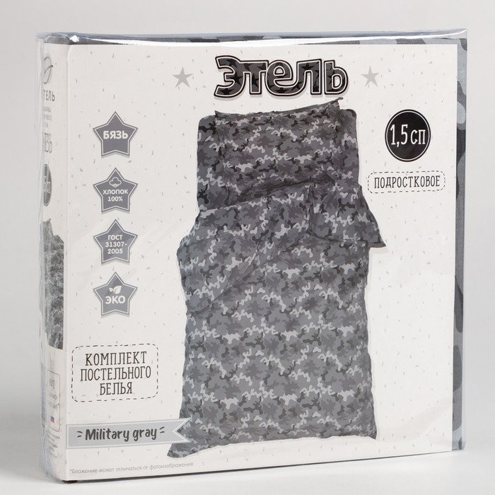 Постельное бельё Этель 1,5 сп «Military gray» 143×215 см, 150×214 см, 50×70 см -1 шт, 100% хлопок, бязь