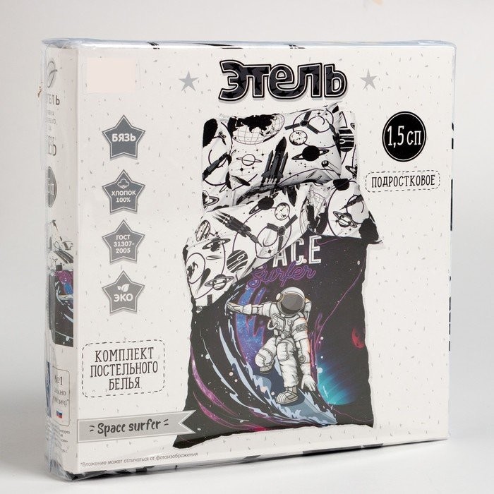 Постельное бельё Этель 1,5 сп «Space surfer» 143×215 см, 150×214 см, 50×70 см -1 шт, 100% хлопок, бязь