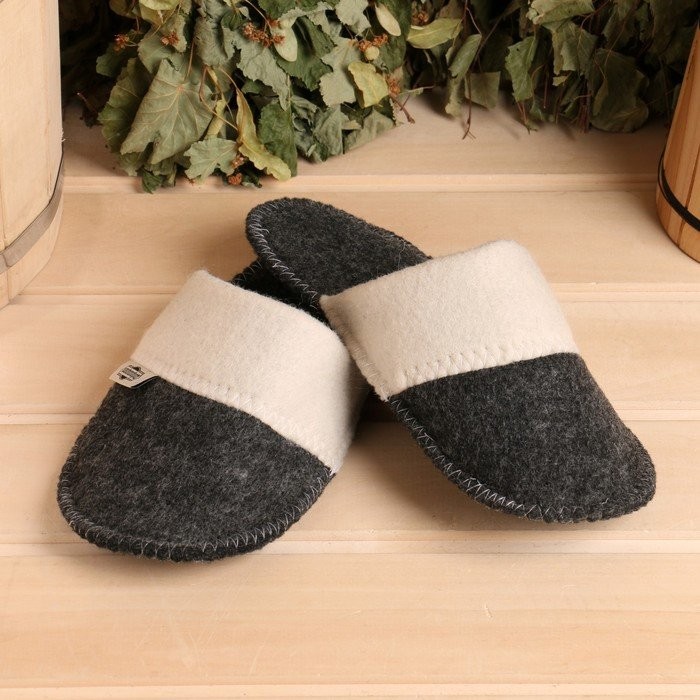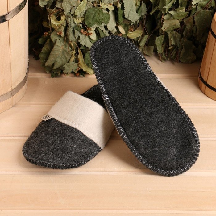 Тапочки для бани серые с отворотом (26 см внутр. стелька)
