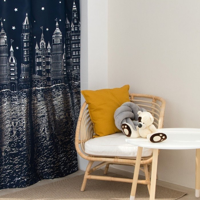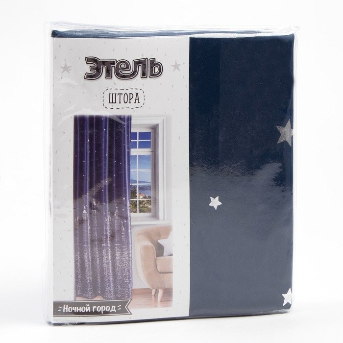 Портьера Этель «Ночной город» без держателя, цвет синий, 170×260 см, блэкаут, 100% полиэстер