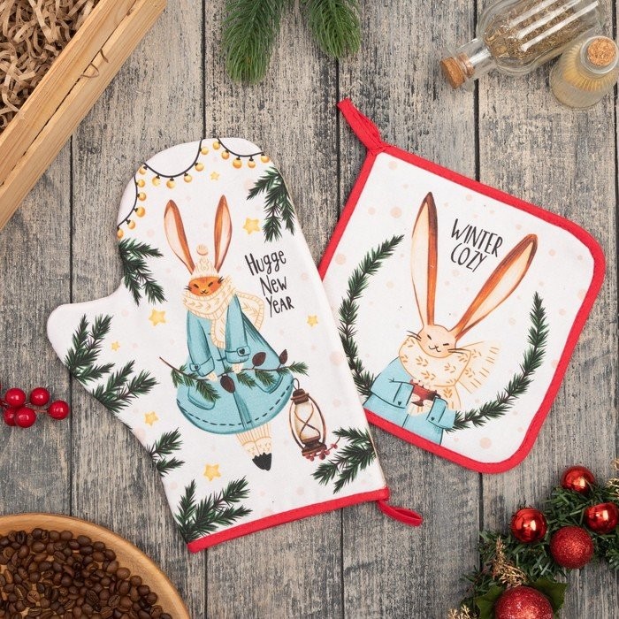 Набор кух. «Hugge New Year» варежка-прихватка 20×28 см, прихватка 19×19 см, 100% хл