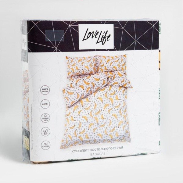 Постельное бельё LoveLife евро Bananas 200×217 см, 225×240 см, 50х70см-2шт, 100%хлопок, сатин, 125г/м²
