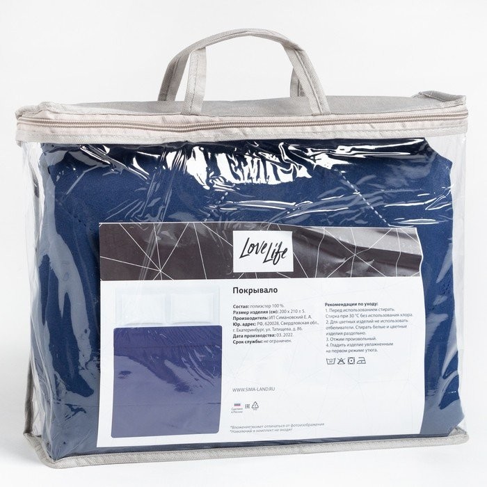 Покрывало LoveLife 1,5 сп 150×210±5 см, цвет синий, микрофайбер, 100% п/э