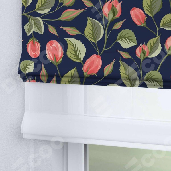 Римская штора день-ночь производителя «Cortin», используется для проёма, пошита из двух полотен, с лицевой блэкаут с нанесением сублимационной печати «Красная роза», вторая ткань тюль (по стандарту комплектуется тюль белого цвета артикул V-01). Имеет универсальный механизм и подходит для монтажа: на потолок, на стену и в нишу.