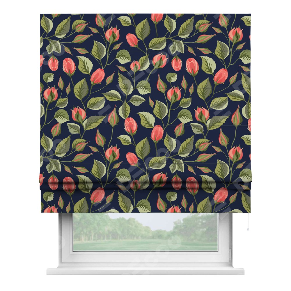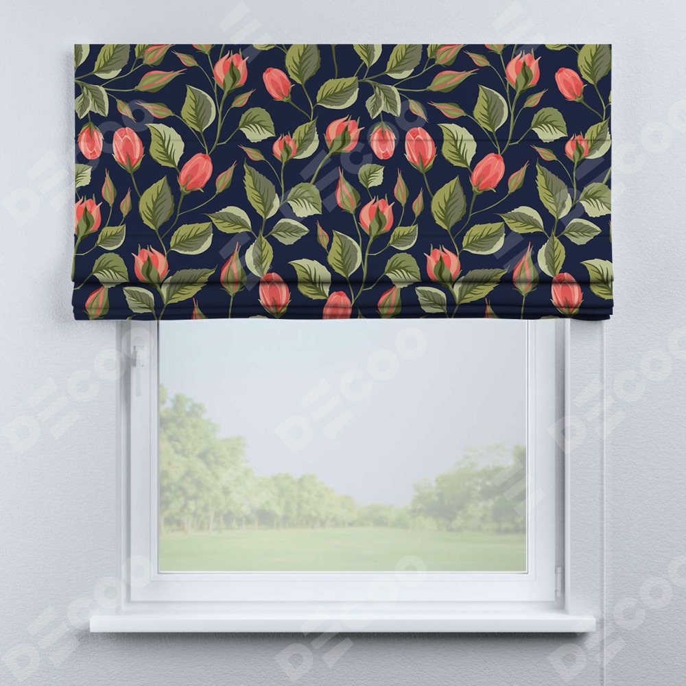 Римская штора производителя «Cortin», используется для проёма, пошита из ткани блэкаут с нанесением сублимационной печати «Красная роза». Имеет универсальный механизм и подходит для монтажа: на потолок, на стену и в нишу.