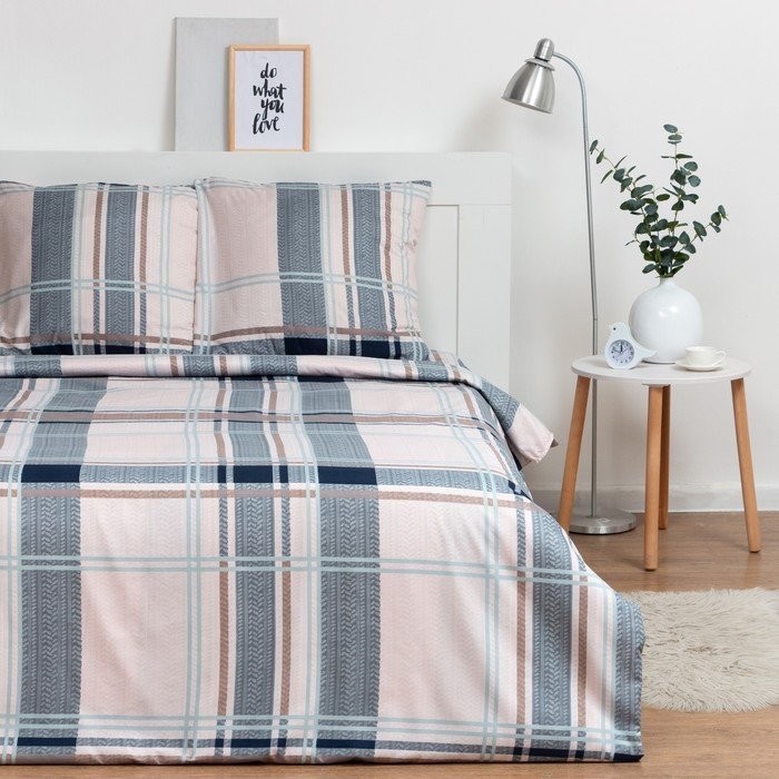 Постельное бельё Экономь и Я Евро «Клетка» 200×210 см, 220×215 см, 70×70 см-2 шт, полисатин, 80 г/м²