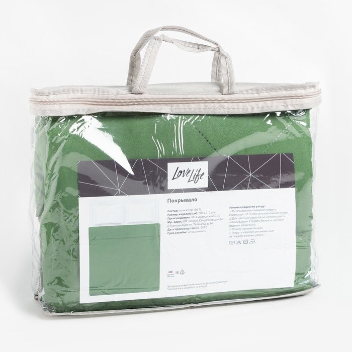 Покрывало LoveLife 1,5 сп 150×210±5 см, цвет зелёный, микрофайбер, 100% п/э