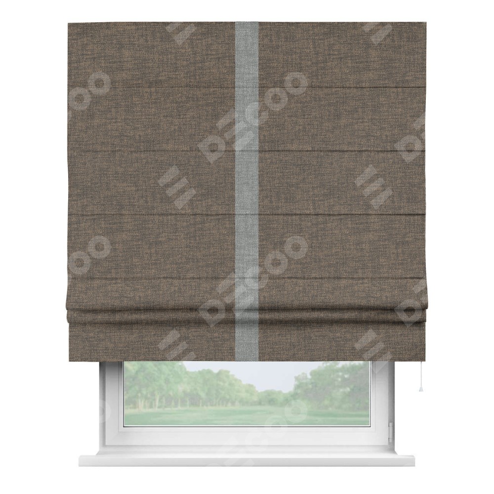 Римская штора «Кортин» с кантом Хайвэй, для проема, ткань рогожка димаут, коричневый