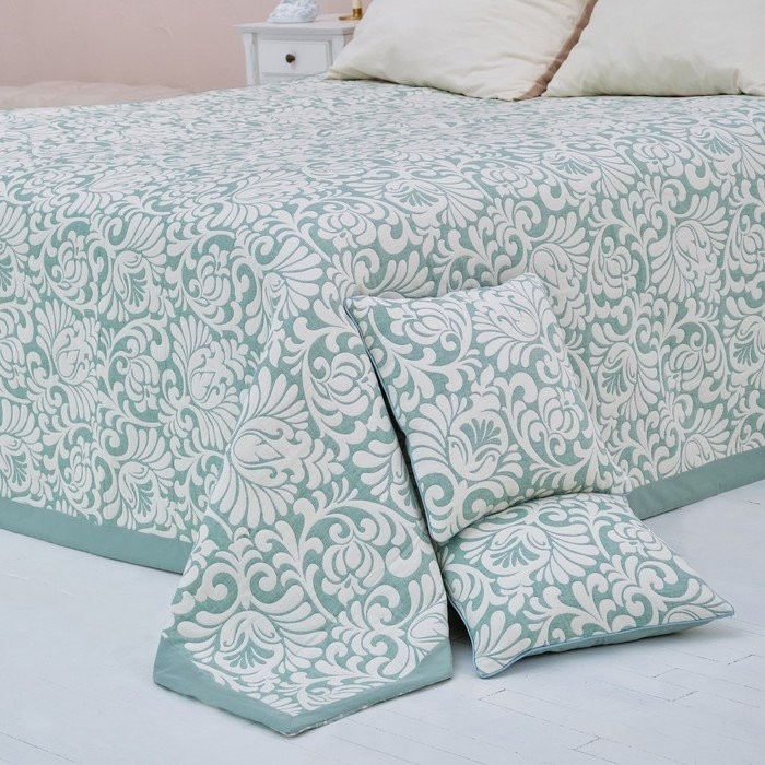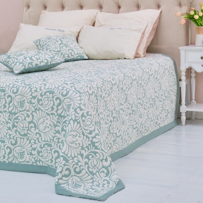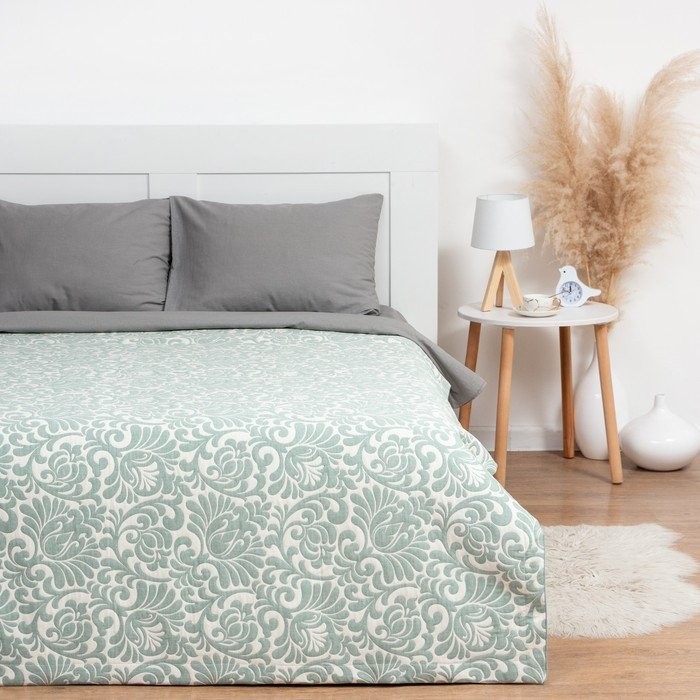 Покрывало хлопковое Этель «Узоры» 220×240 см, цвет зелёный, 100% хлопок, 300гр/м2