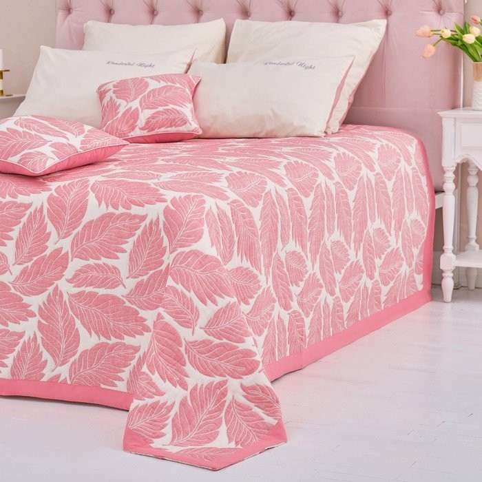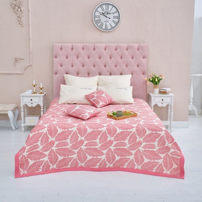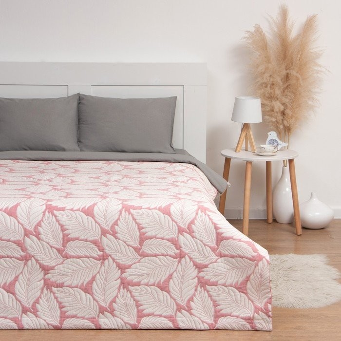 Покрывало хлопковое Этель «Листопад» 200×240 см, цвет розовый, 100% хлопок, 300гр/м2