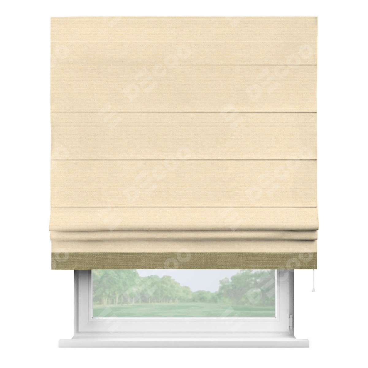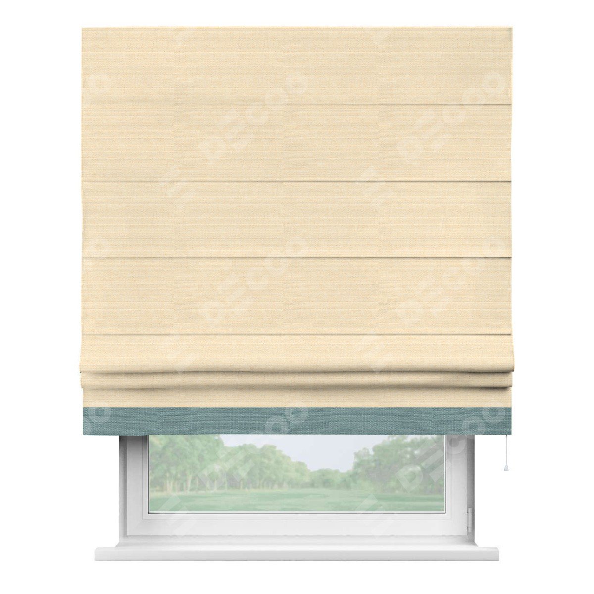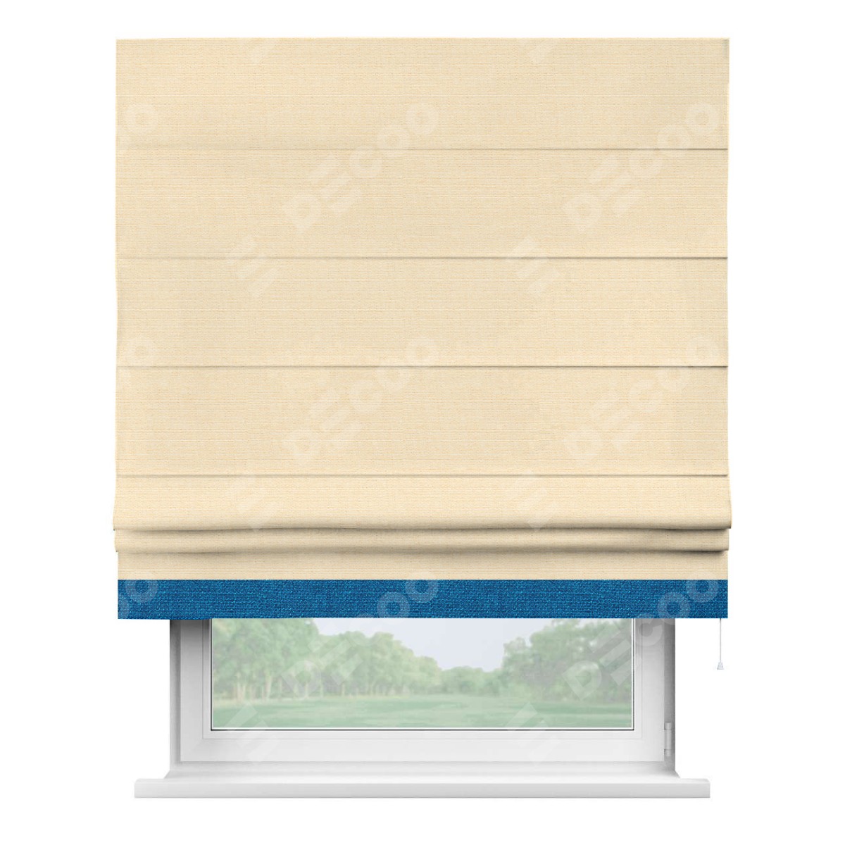 Римская штора производителя «Cortin», используется для проёма, пошита из ткани лён бежевый, артикул 53431. Отделка шторы кантом «Джестер», ткань для канта используется из льна разной расцветки на выбор. Имеет универсальный механизм и подходит для монтажа: на потолок, на стену и в нишу.