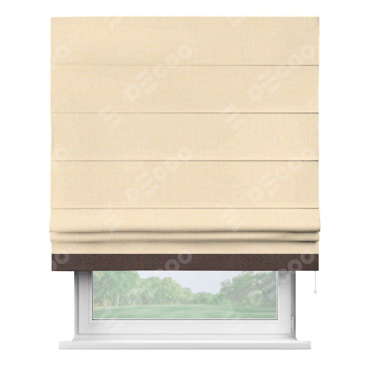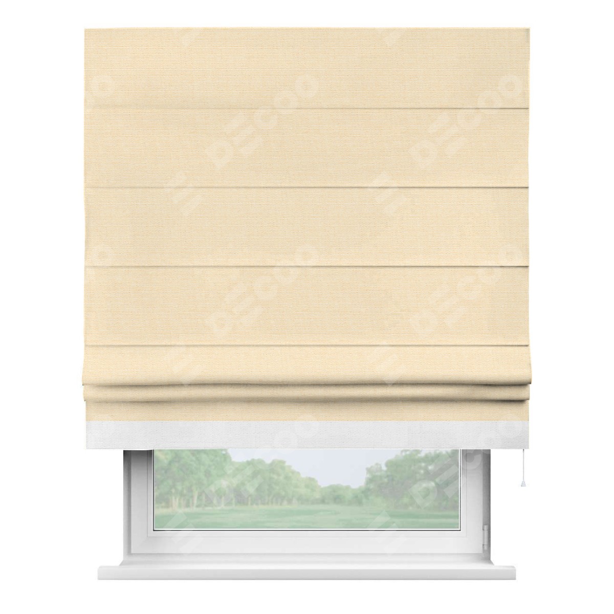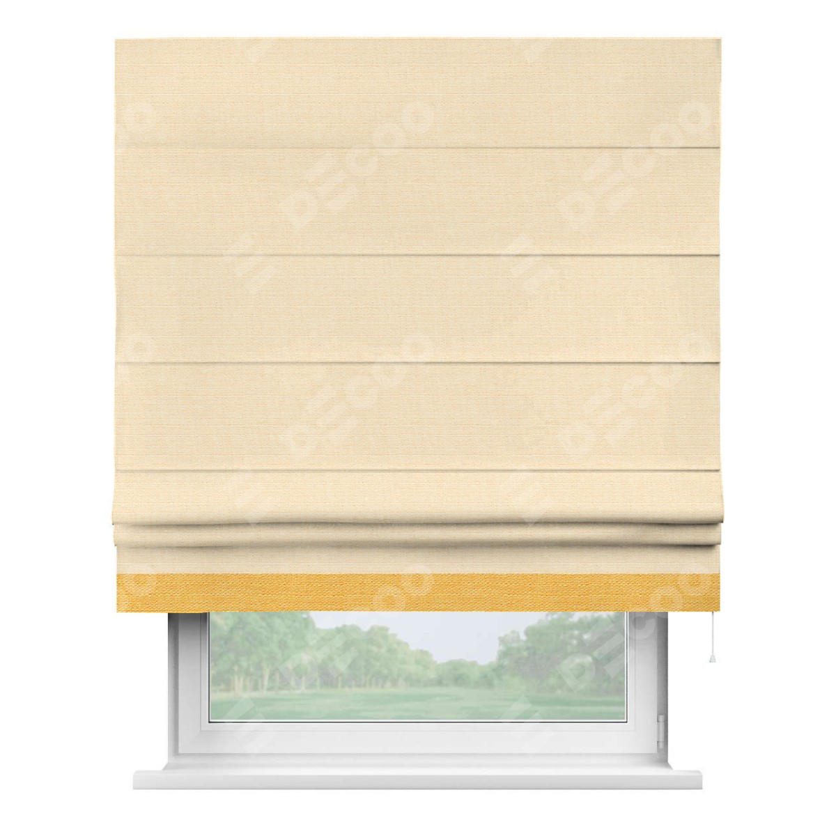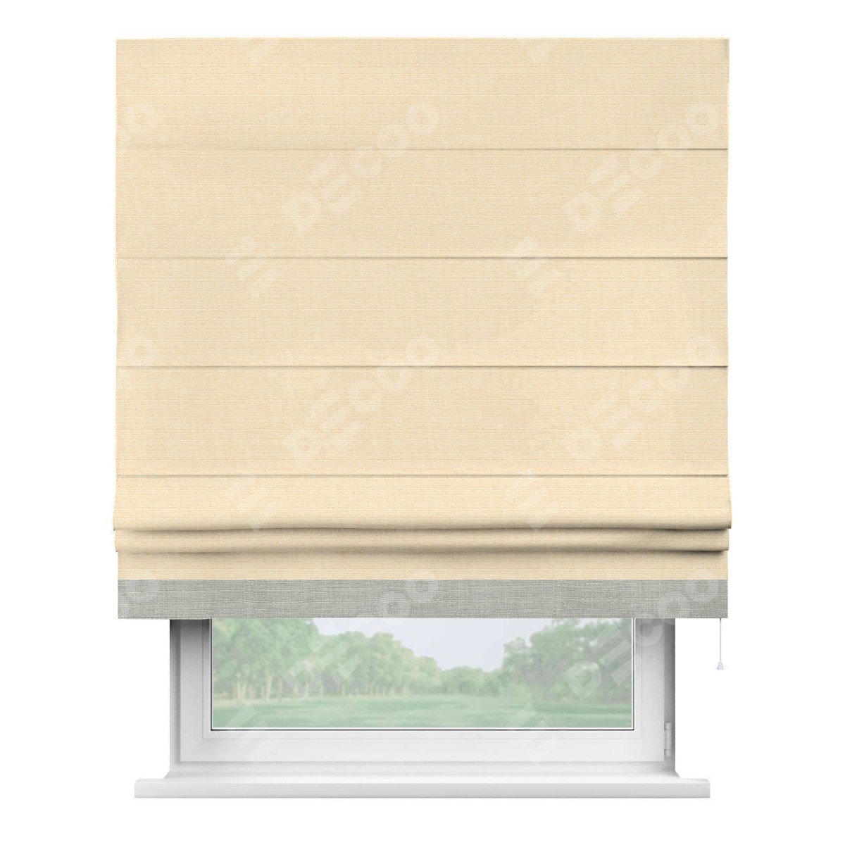 Римская штора производителя «Cortin», используется для проёма, пошита из ткани лён бежевый, артикул 53431. Отделка шторы кантом «Джестер», ткань для канта используется из льна разной расцветки на выбор. Имеет универсальный механизм и подходит для монтажа: на потолок, на стену и в нишу.