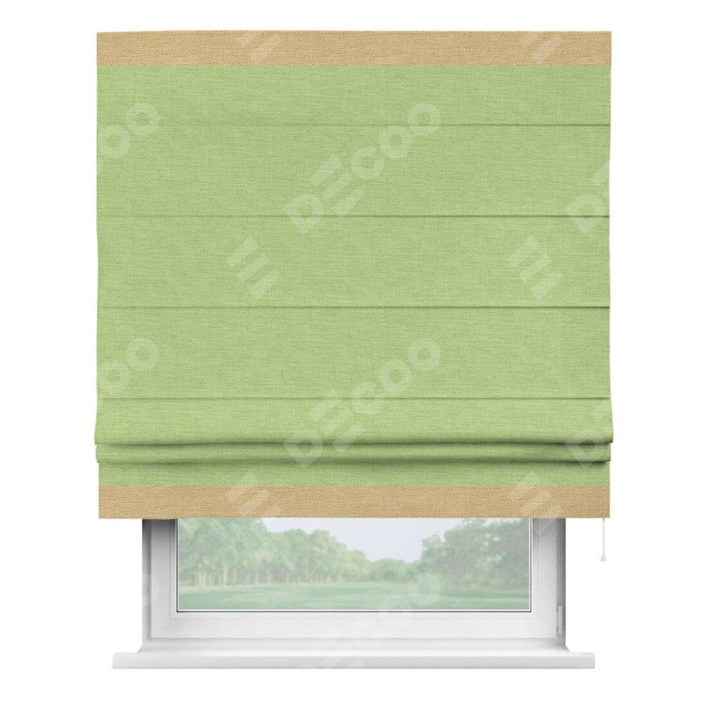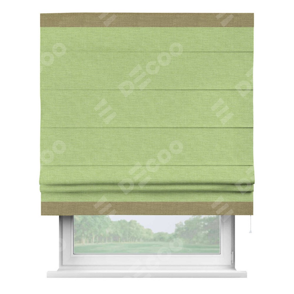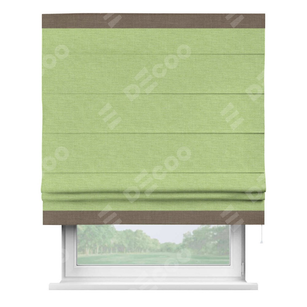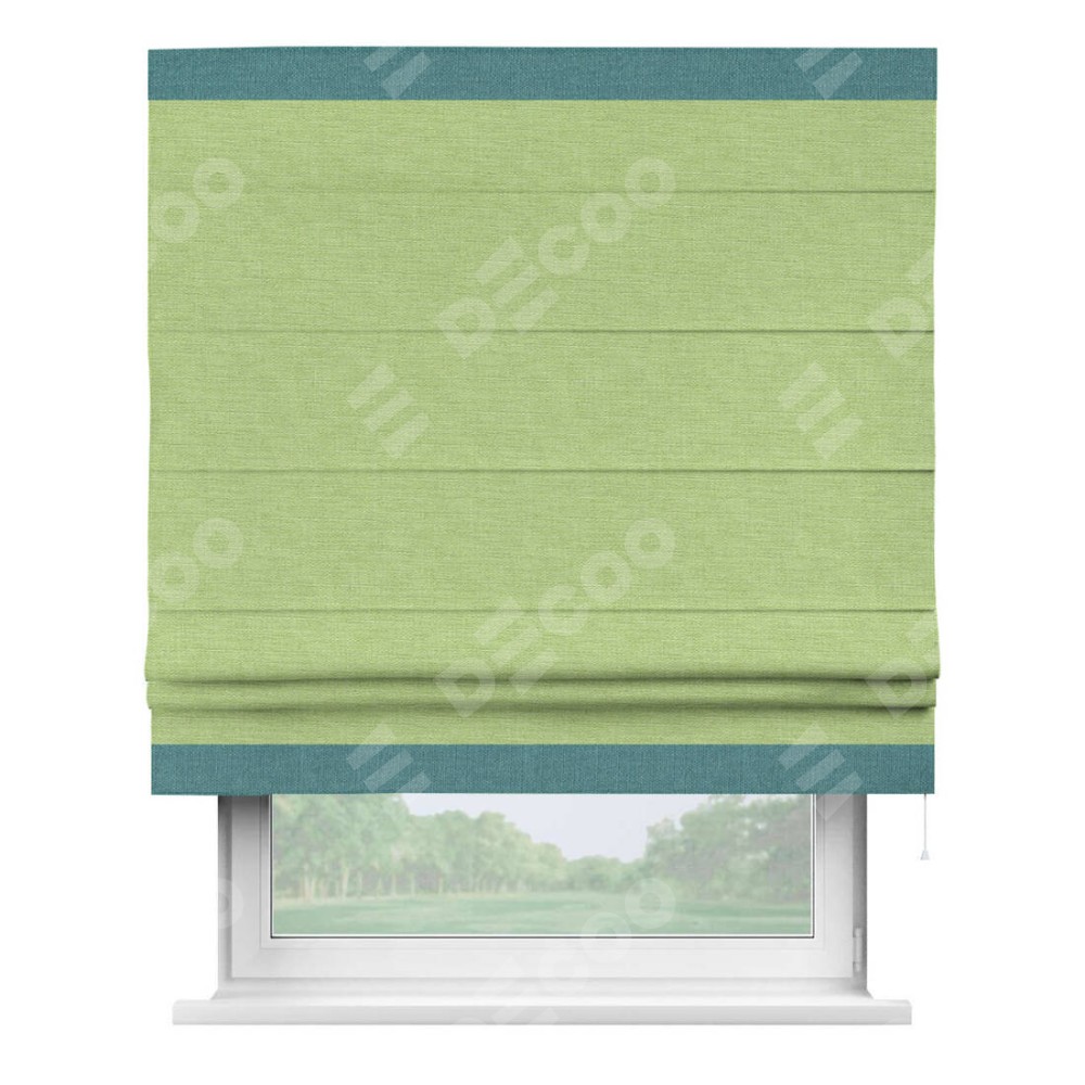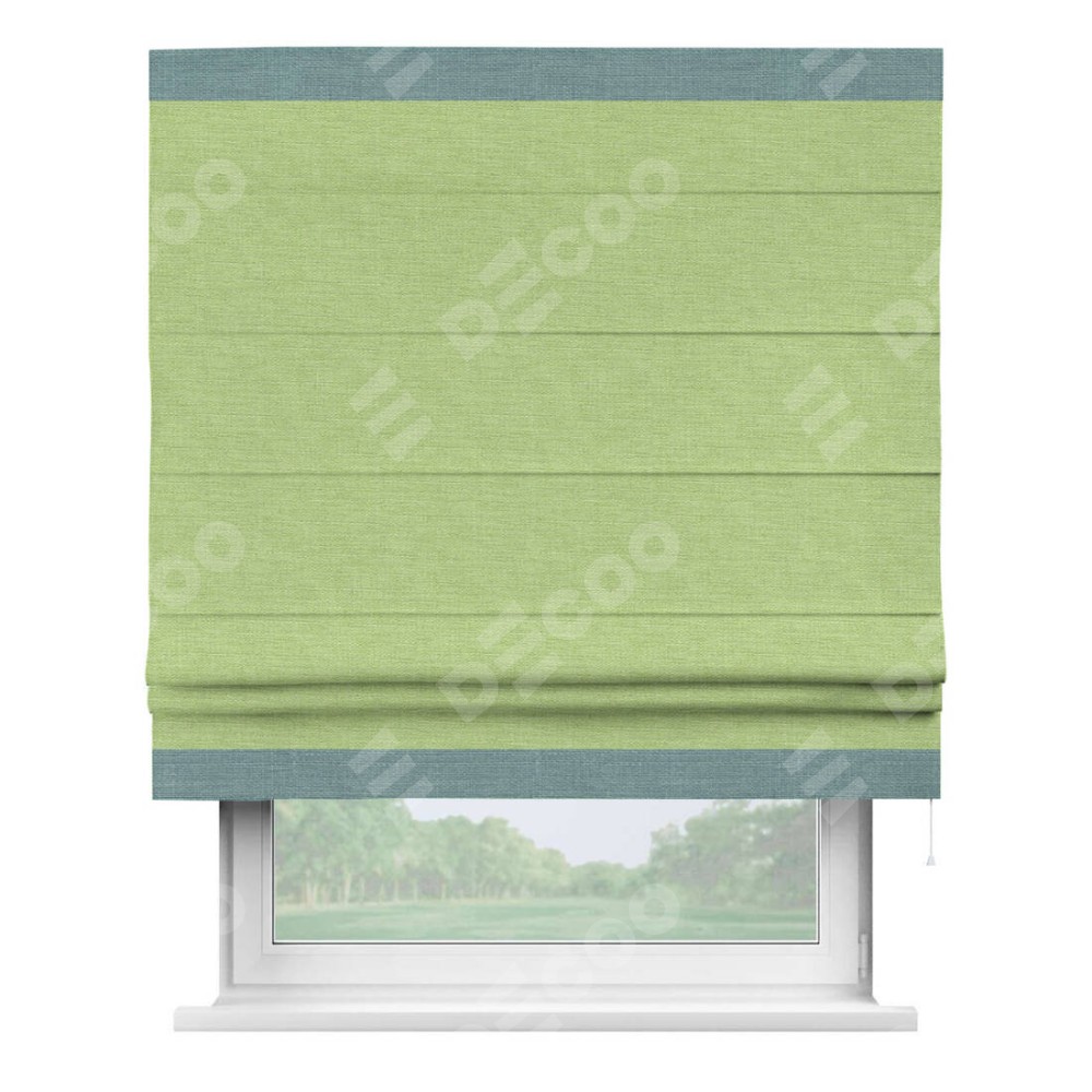 Римская штора «Кортин» с кантом Горизонт, для проема, ткань лён зеленый