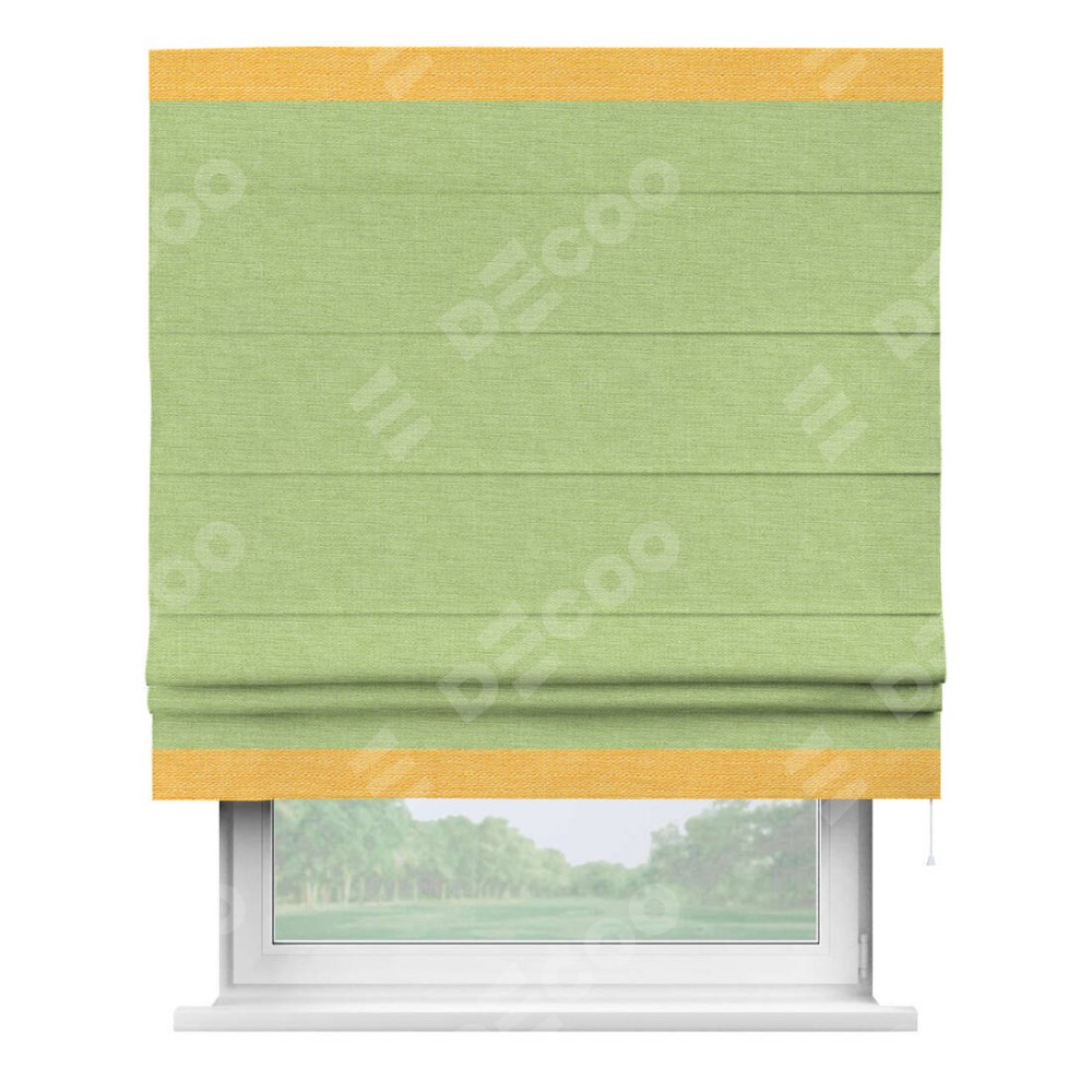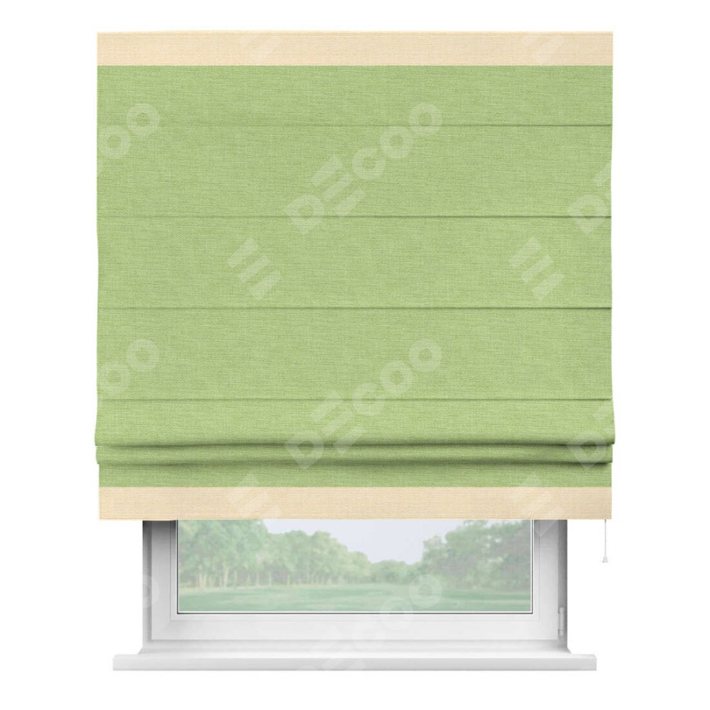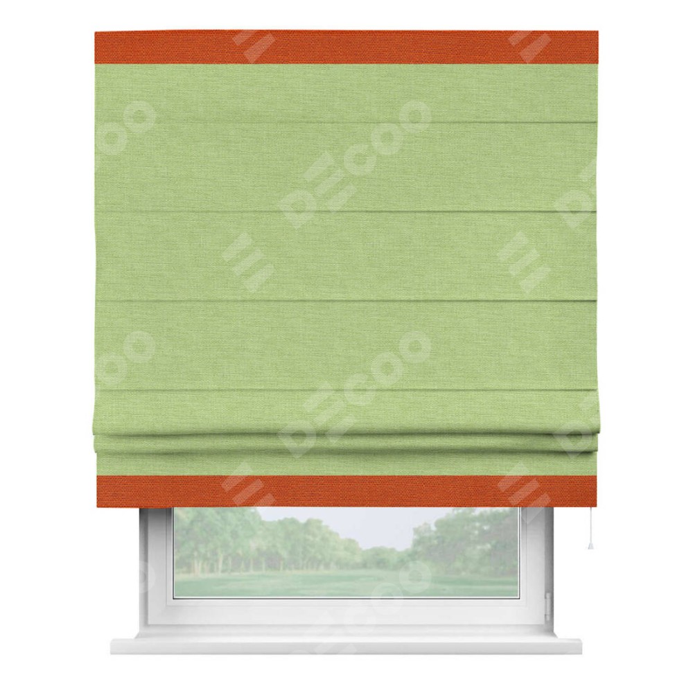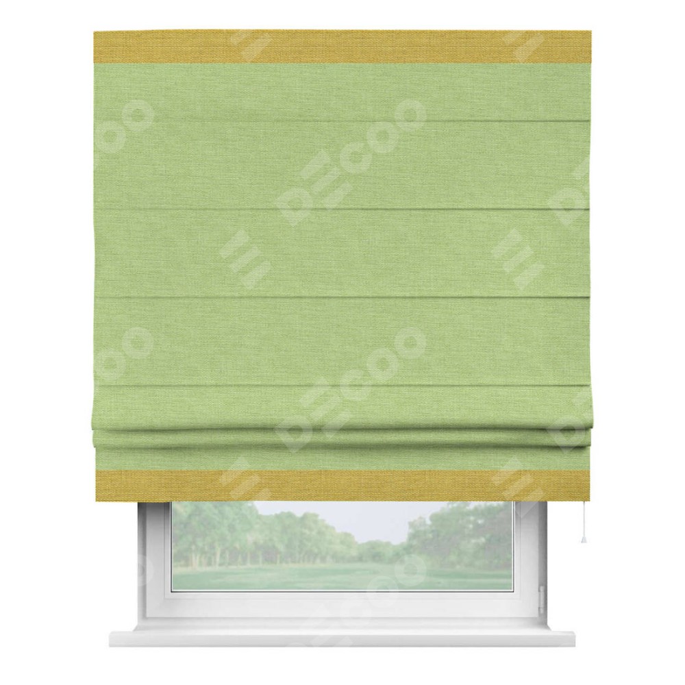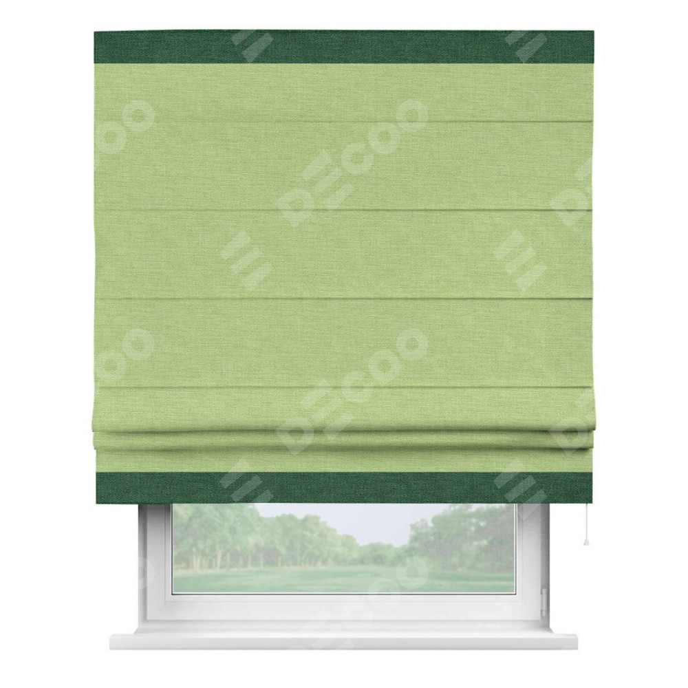 Римская штора «Кортин» с кантом Горизонт, для проема, ткань лён зеленый