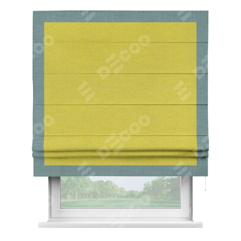 Римская штора «Кортин» с кантом Чесс, для проема, ткань лён салатовый