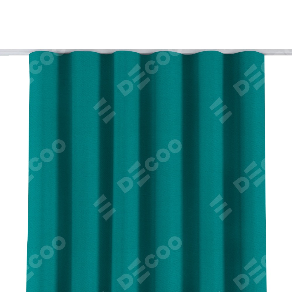 Комплект прямых штор, от производителя «Cortin», пошиты из ткани блэкаут однотонный бирюзовый, артикул ткани 88297. С изнаночной стороны в верхней части штор пристрачивается шторная лента с декоративными складками «Волна». Для создания элегантных складок прямые шторы шьются по стандарту с коэффициентом 1:2 (на 100 см. ширины проёма 200 см. ширины ткани).