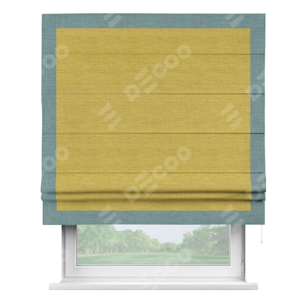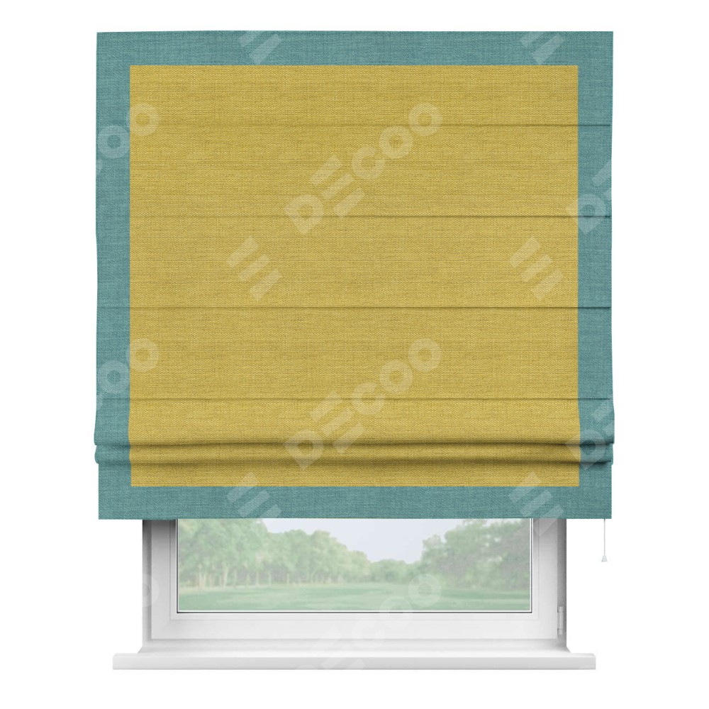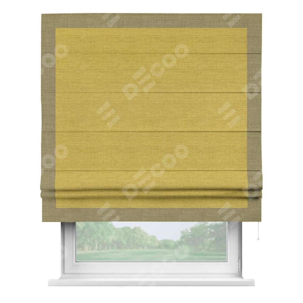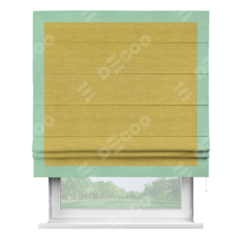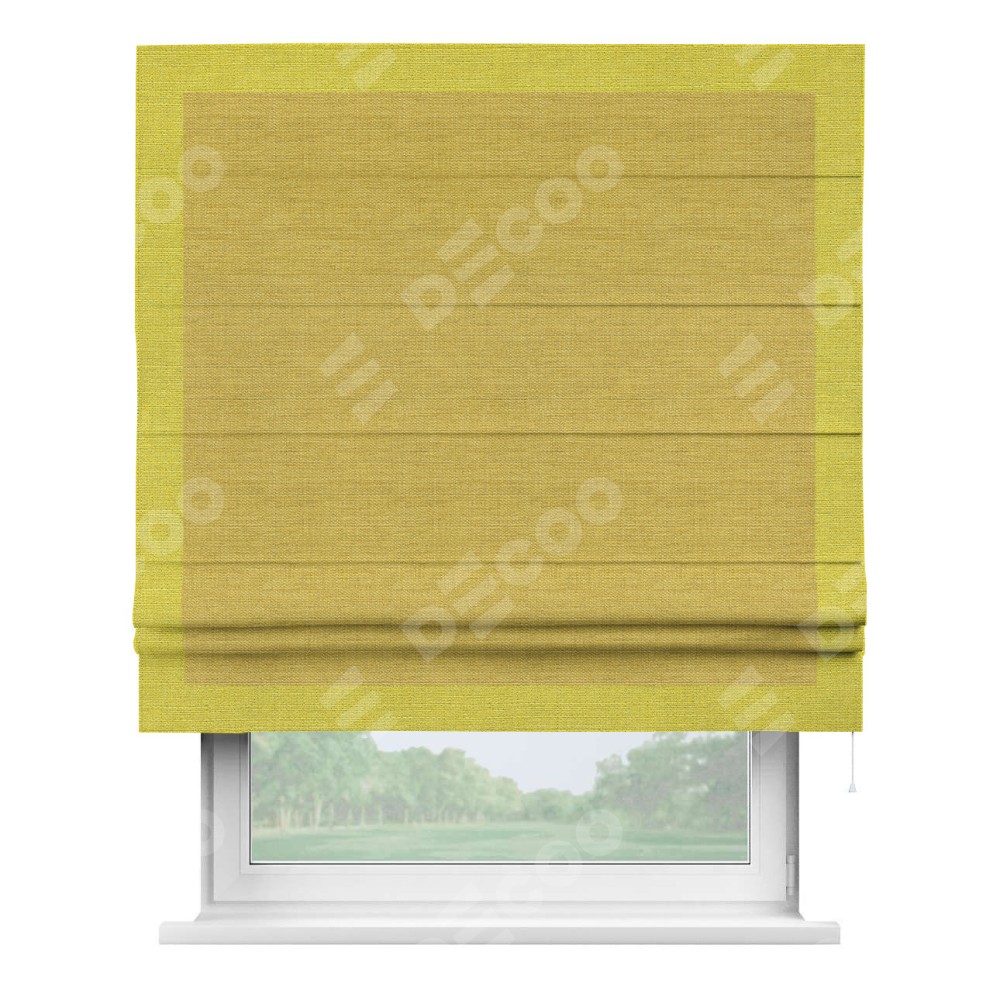 Римская штора «Кортин» с кантом Чесс, для проема, ткань лён светло-салатовый