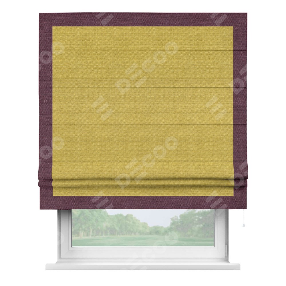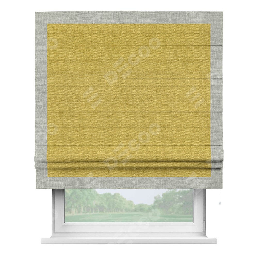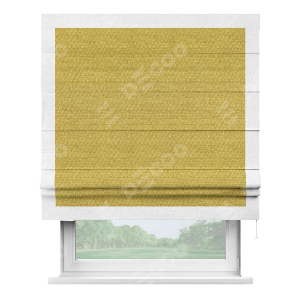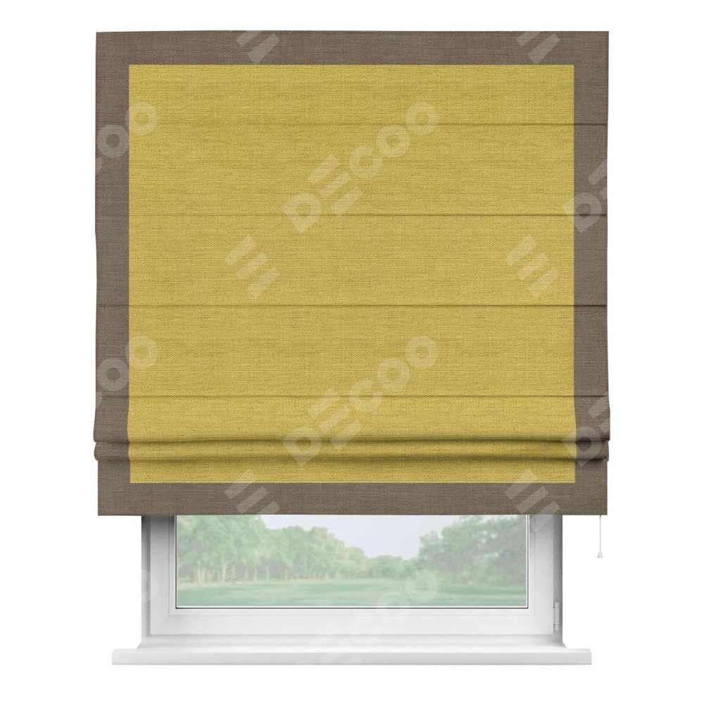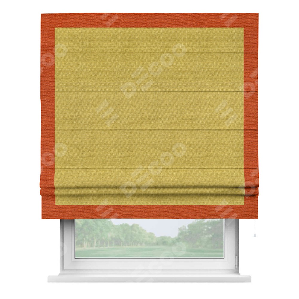 Римская штора «Кортин» с кантом Чесс, для проема, ткань лён светло-салатовый