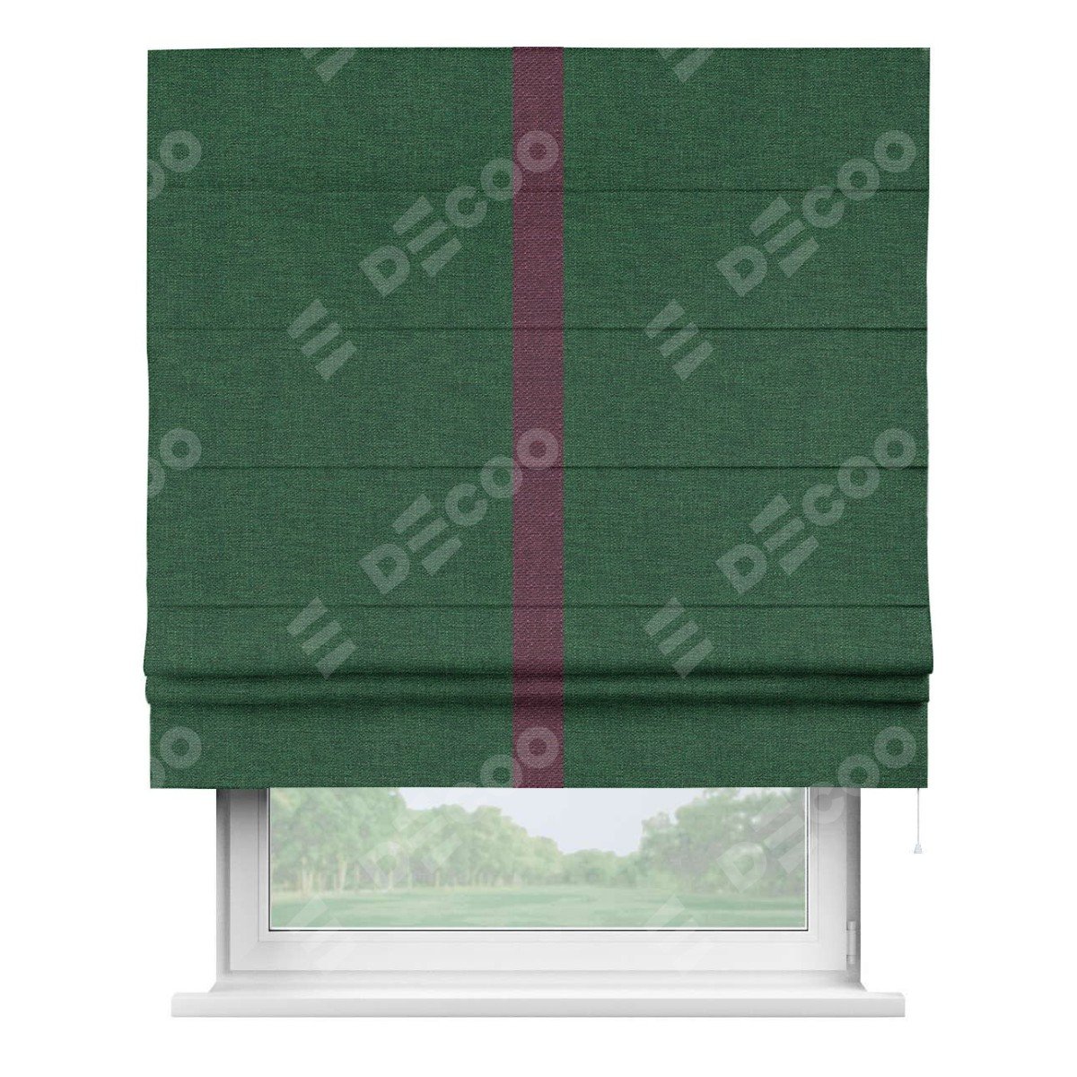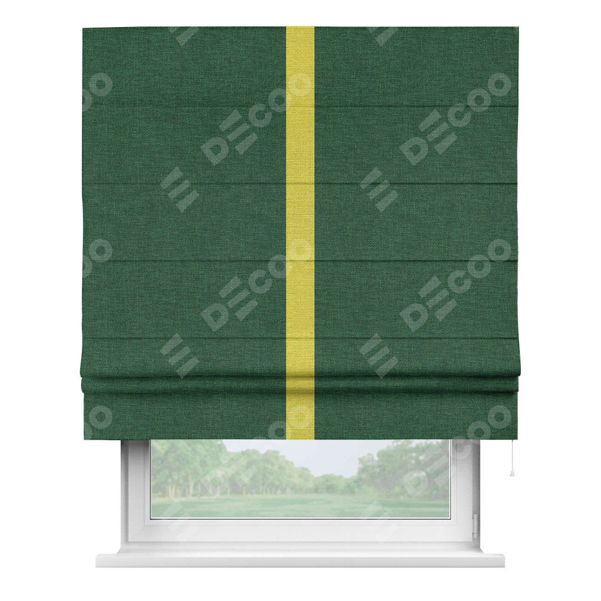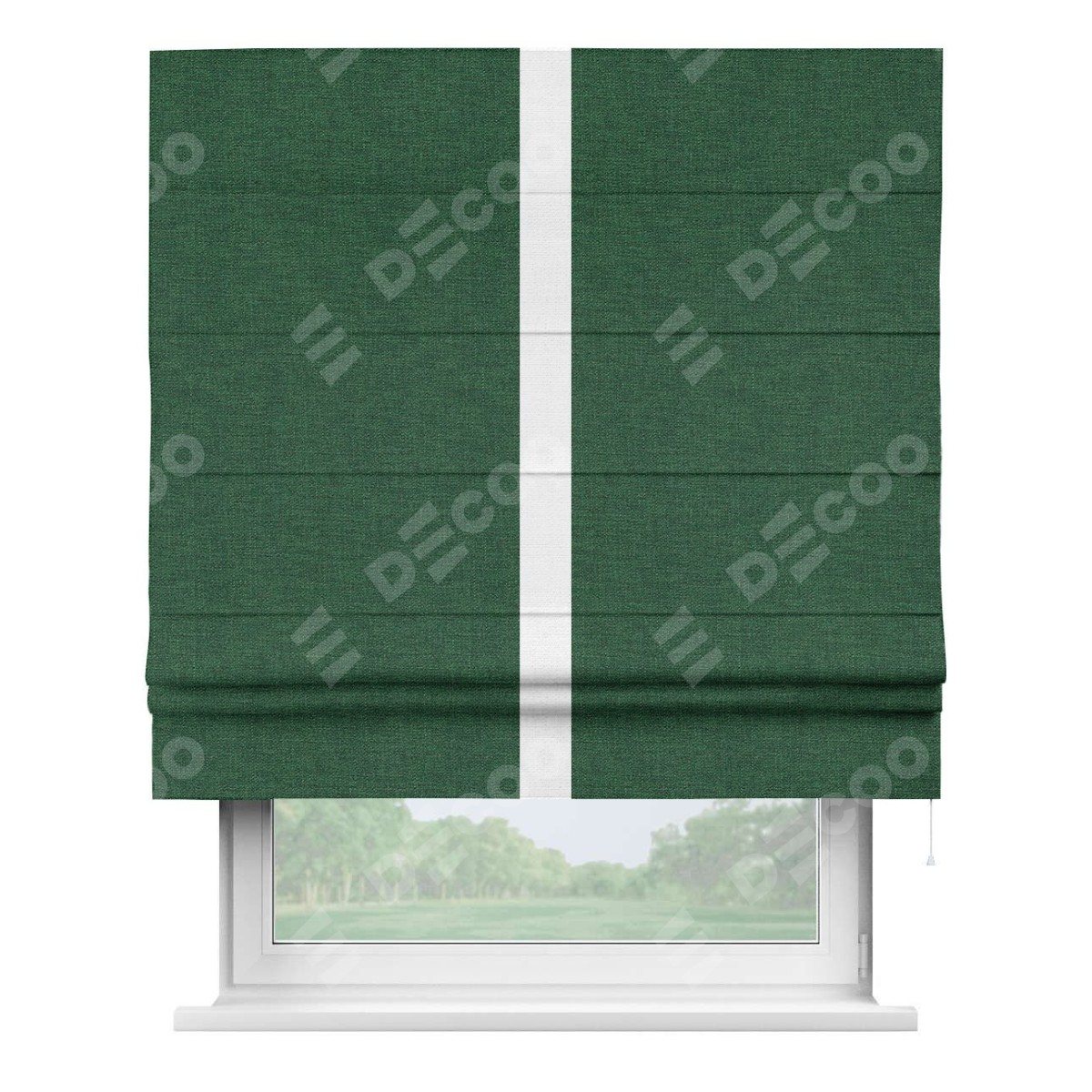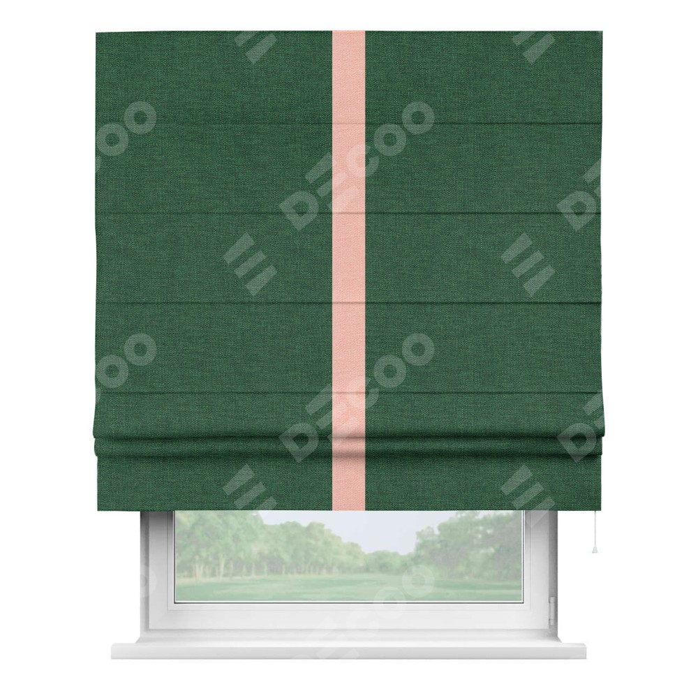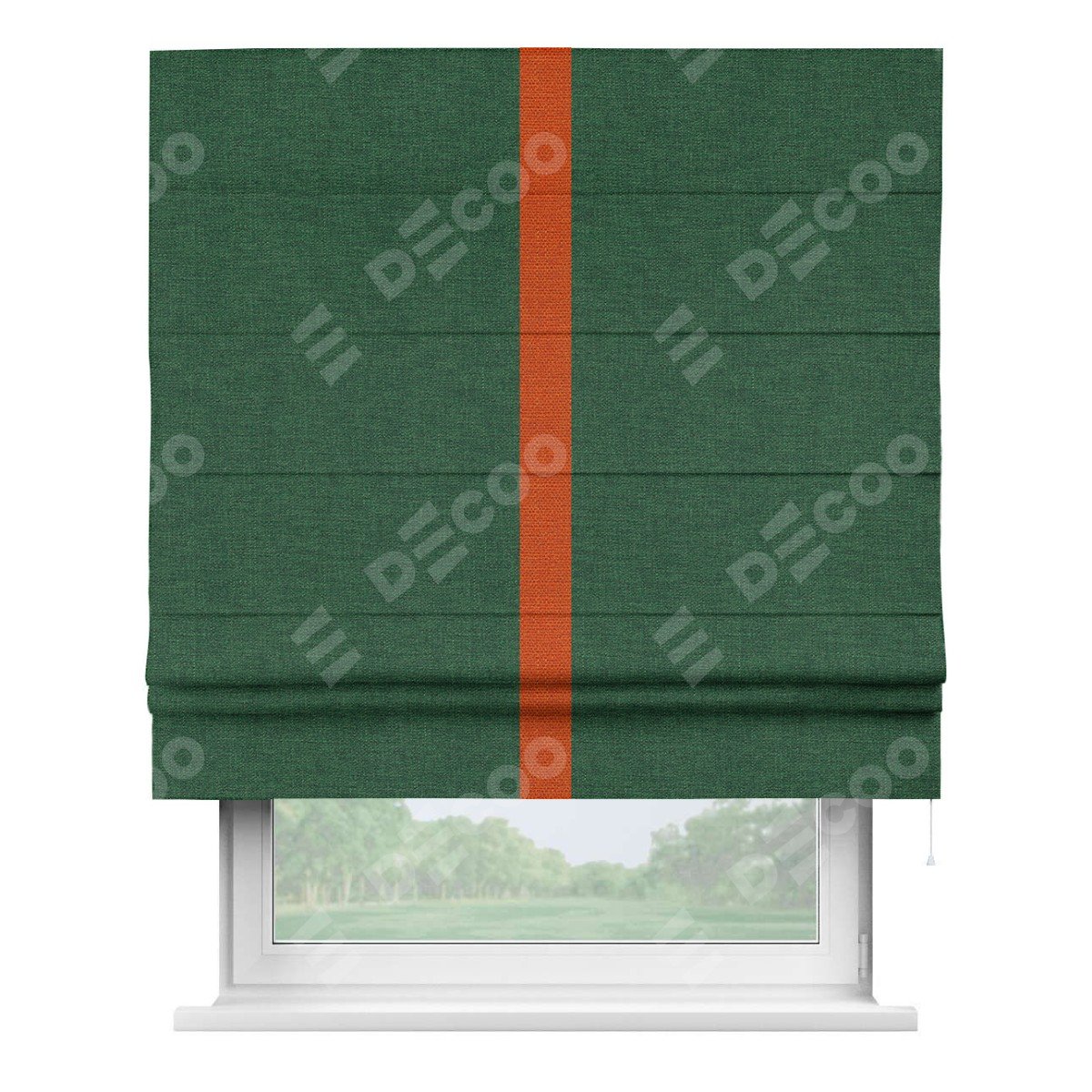 Римская штора производителя «Cortin», используется для проёма, пошита из ткани лён серо-зеленый, артикул 63740. Отделка шторы кантом «Хайвэй», ткань для канта используется из льна разной расцветки на выбор. Имеет универсальный механизм и подходит для монтажа: на потолок, на стену и в нишу.