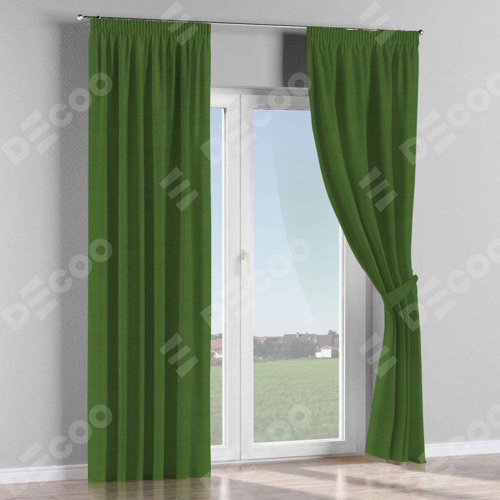Комплект прямых штор, от производителя «Cortin», пошиты из ткани блэкаут однотонный зелёный перламутр, артикул ткани 81859п. С изнаночной стороны в верхней части штор пристрачивается шторная лента с декоративными складками «Карандаш». Для создания элегантных складок прямые шторы шьются по стандарту с коэффициентом 1:2 (на 100 см. ширины проёма 200 см. ширины ткани).