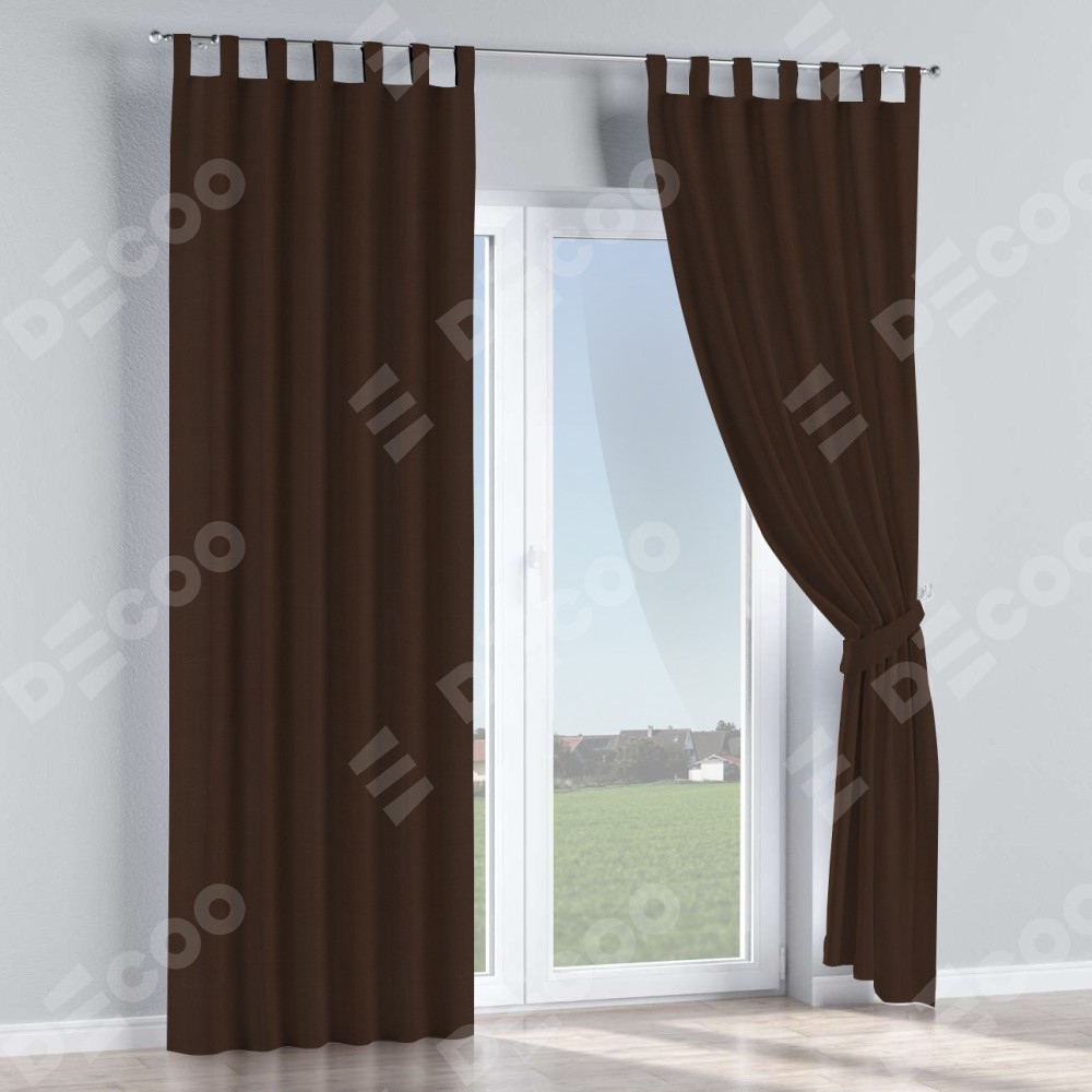 Комплект прямых штор, от производителя «Cortin», пошиты из ткани блэкаут однотонный тёмно-коричневый, артикул ткани 88287. Данная модель пошита на петлях, комплектуется на выбор круглым карнизом и подходит для монтажа на стену или потолок. Прямые шторы на петлях шьются по стандарту с коэффициентом 1/2 (на 100 см. ширины проёма 200 см. ширины ткани), отличительным преимуществом данной модели является простой способ монтажа. Достаточно повесить ее на трубу и штора готова!