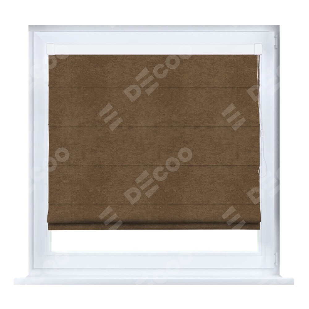 Римская штора кассетного типа, производителя «Cortin», устанавливается только на пластиковые окна и прилегает к стеклопакету, пошита из ткани софт однотонный бронзовый, артикул 33099.