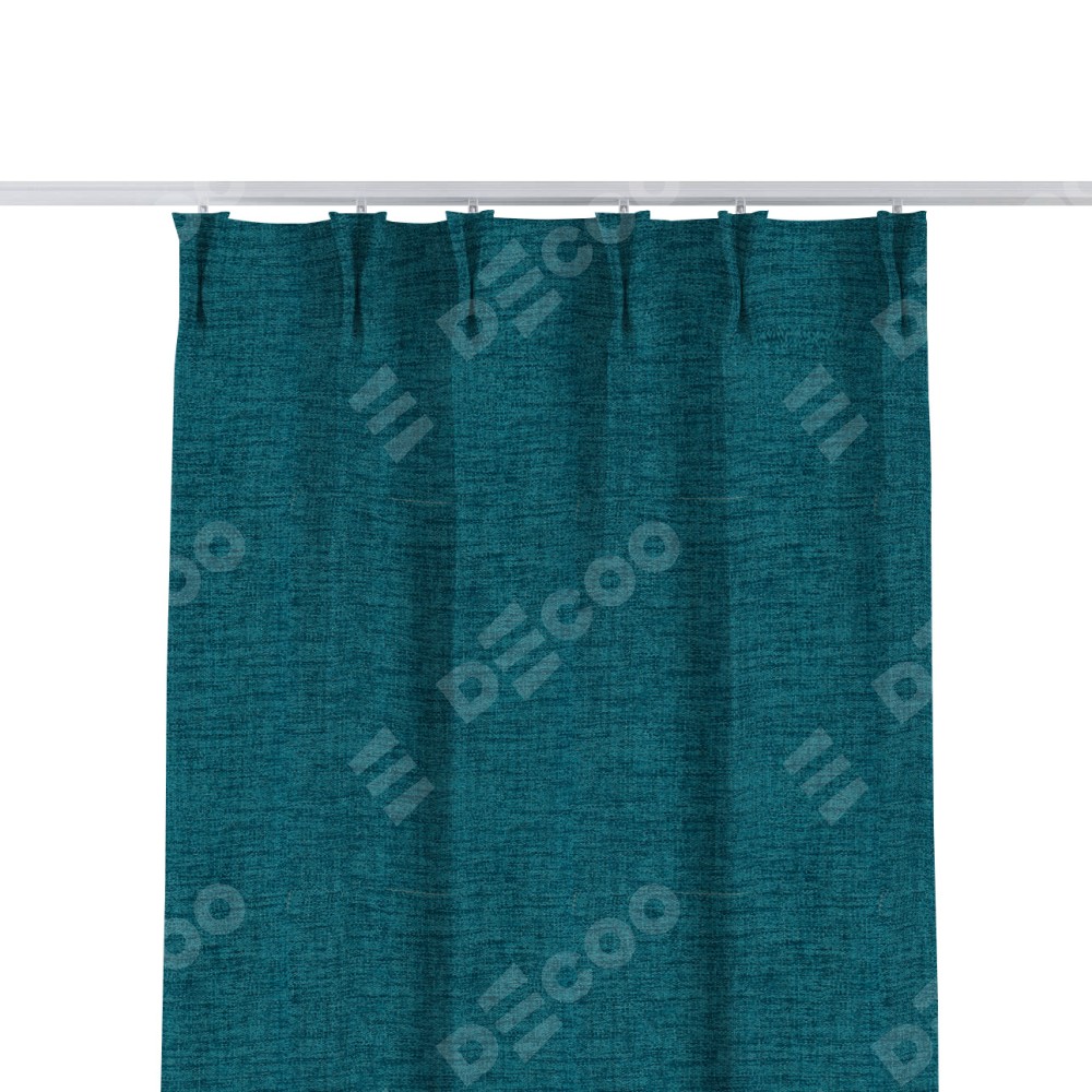 Комплект прямых штор, от производителя «Cortin», пошиты из ткани рогожка димаут синий, артикул ткани 80422. С изнаночной стороны в верхней части штор пристрачивается шторная лента с декоративными складками «Кустик». Для создания элегантных складок прямые шторы шьются по стандарту с коэффициентом 1:2 (на 100 см. ширины проёма 200 см. ширины ткани).