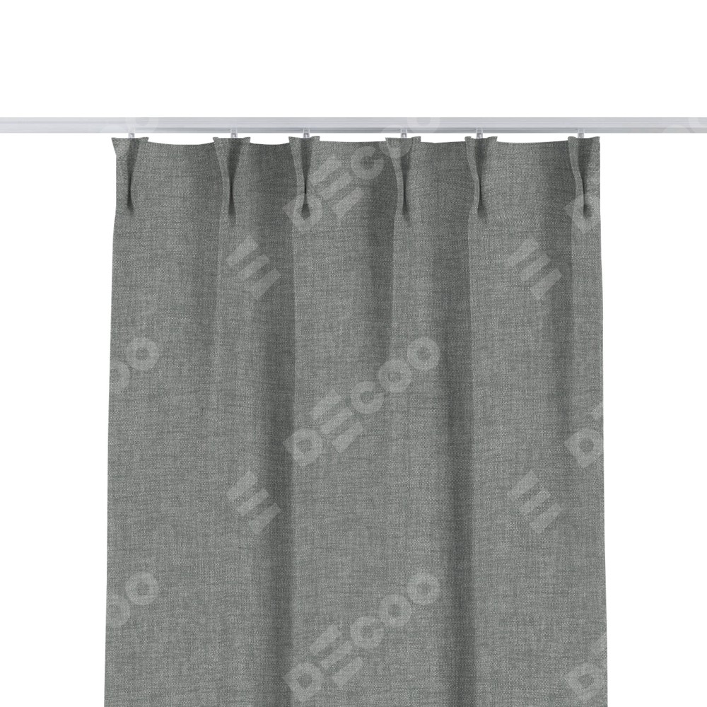 Комплект прямых штор, от производителя «Cortin», пошиты из ткани рогожка димаут тёмно-серый, артикул ткани 80418. С изнаночной стороны в верхней части штор пристрачивается шторная лента с декоративными складками «Кустик». Для создания элегантных складок прямые шторы шьются по стандарту с коэффициентом 1:2 (на 100 см. ширины проёма 200 см. ширины ткани).