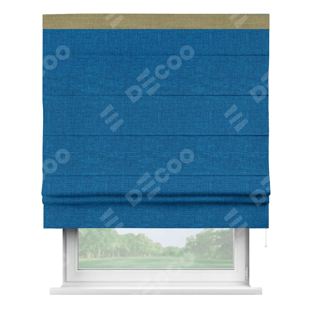 Римская штора «Кортин» с кантом Кинг, для проема, ткань лён синий