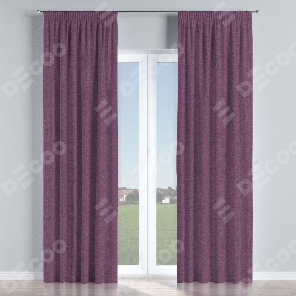 Комплект прямых штор, от производителя «Cortin», пошиты из ткани лён димаут брусника, артикул ткани 16. С изнаночной стороны в верхней части штор пристрачивается шторная лента с декоративными складками «Карандаш». Для создания элегантных складок прямые шторы шьются по стандарту с коэффициентом 1:2 (на 100 см. ширины проёма 200 см. ширины ткани).