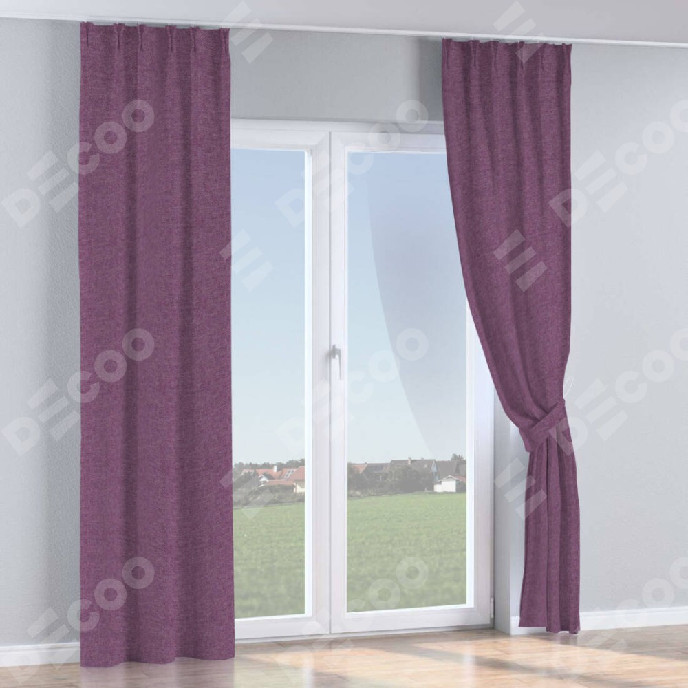 Комплект прямых штор, от производителя «Cortin», пошиты из ткани лён димаут брусника, артикул ткани 16. С изнаночной стороны в верхней части штор пристрачивается шторная лента с декоративными складками «Кустик». Для создания элегантных складок прямые шторы шьются по стандарту с коэффициентом 1:2 (на 100 см. ширины проёма 200 см. ширины ткани).