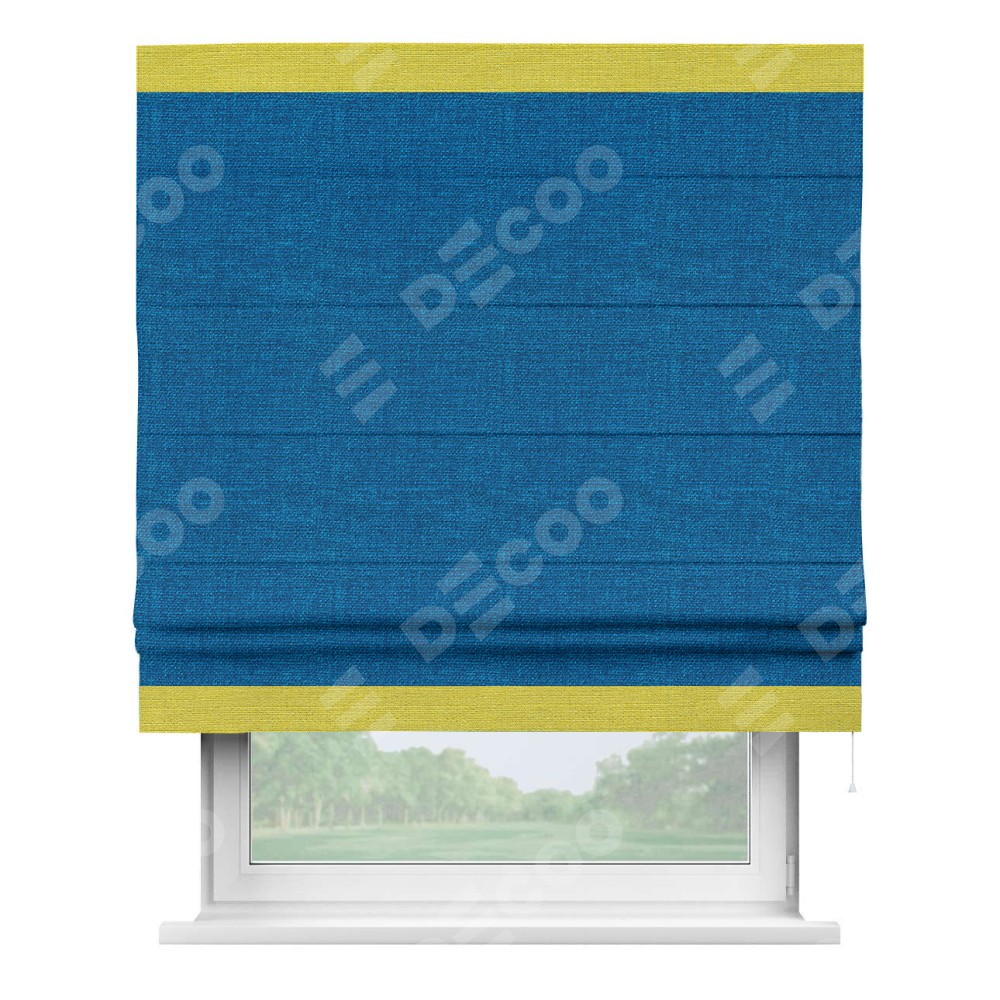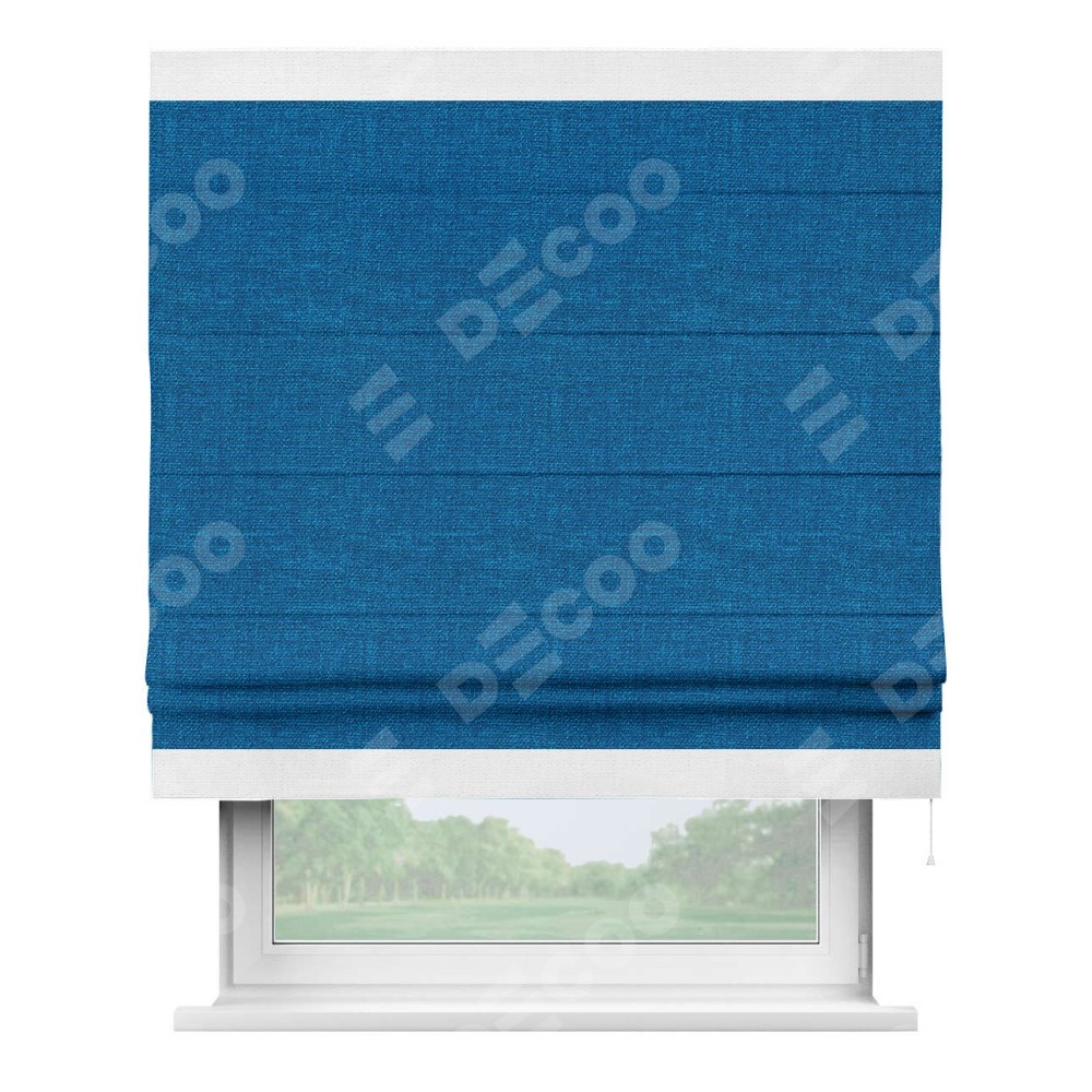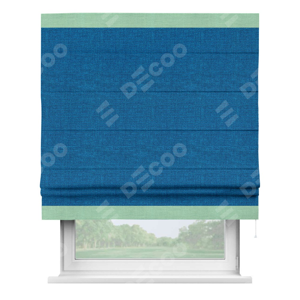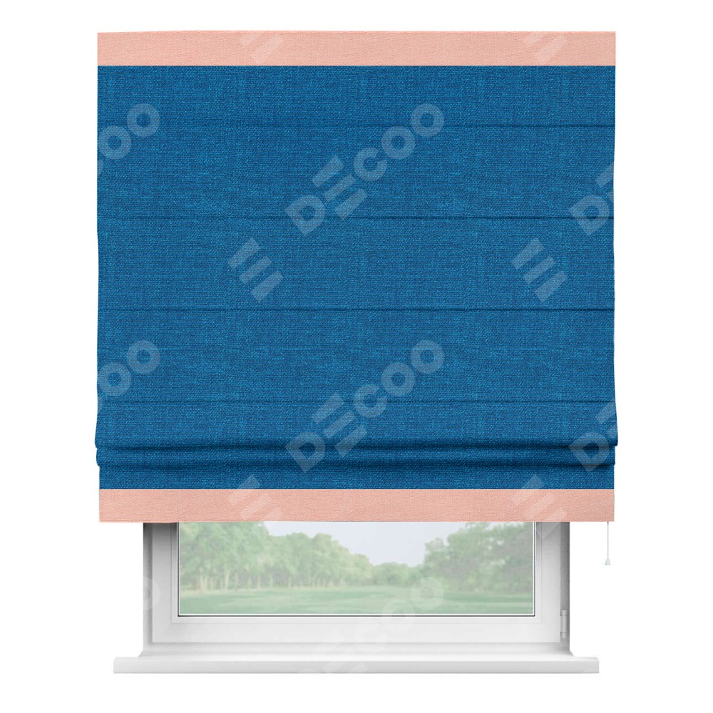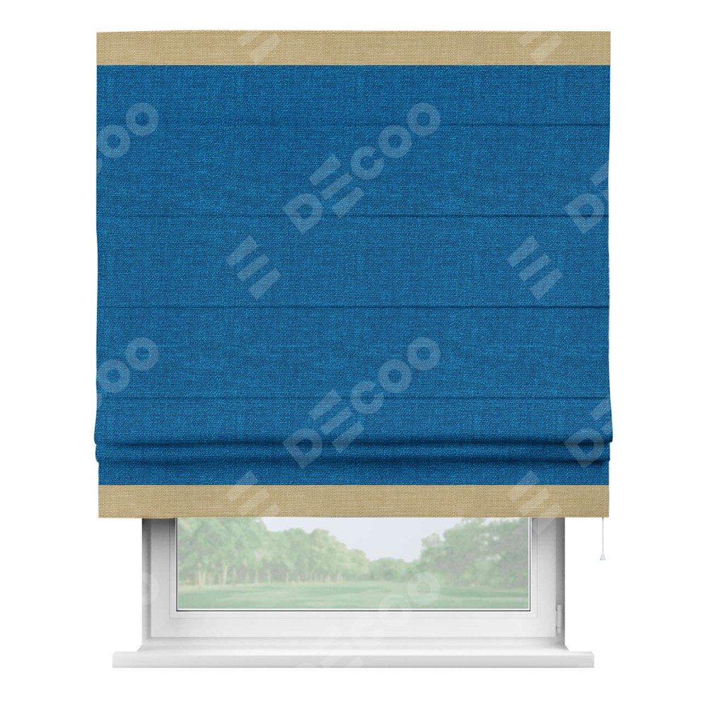 Римская штора «Кортин» с кантом Горизонт, для проема, ткань лён синий
