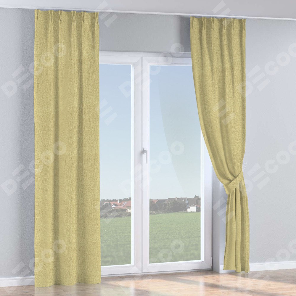 Комплект прямых штор, от производителя «Cortin», пошиты из ткани лён димаут песочный, артикул ткани 16239. С изнаночной стороны в верхней части штор пристрачивается шторная лента с декоративными складками «Кустик». Для создания элегантных складок прямые шторы шьются по стандарту с коэффициентом 1:2 (на 100 см. ширины проёма 200 см. ширины ткани).