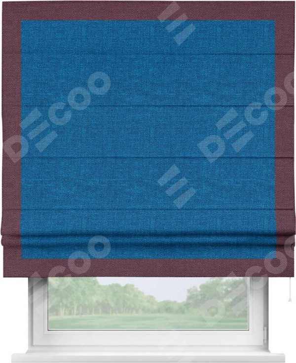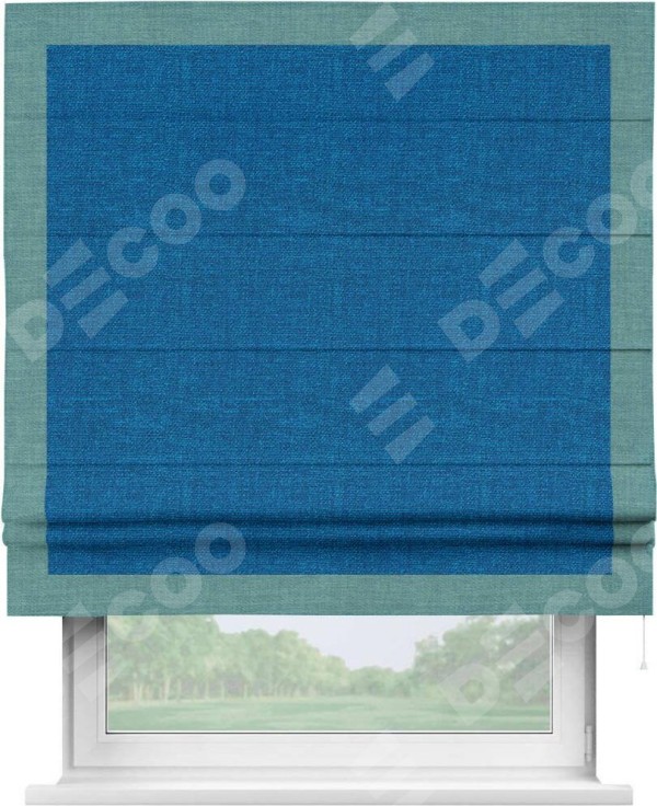 Римская штора «Кортин» с кантом Чесс, для проема, ткань лён синий