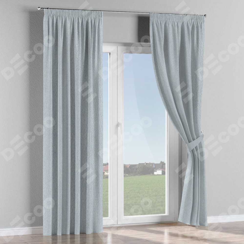 Комплект прямых штор, от производителя «Cortin», пошиты из ткани лён димаут серый, артикул ткани F3. С изнаночной стороны в верхней части штор пристрачивается шторная лента с декоративными складками «Карандаш». Для создания элегантных складок прямые шторы шьются по стандарту с коэффициентом 1:2 (на 100 см. ширины проёма 200 см. ширины ткани).