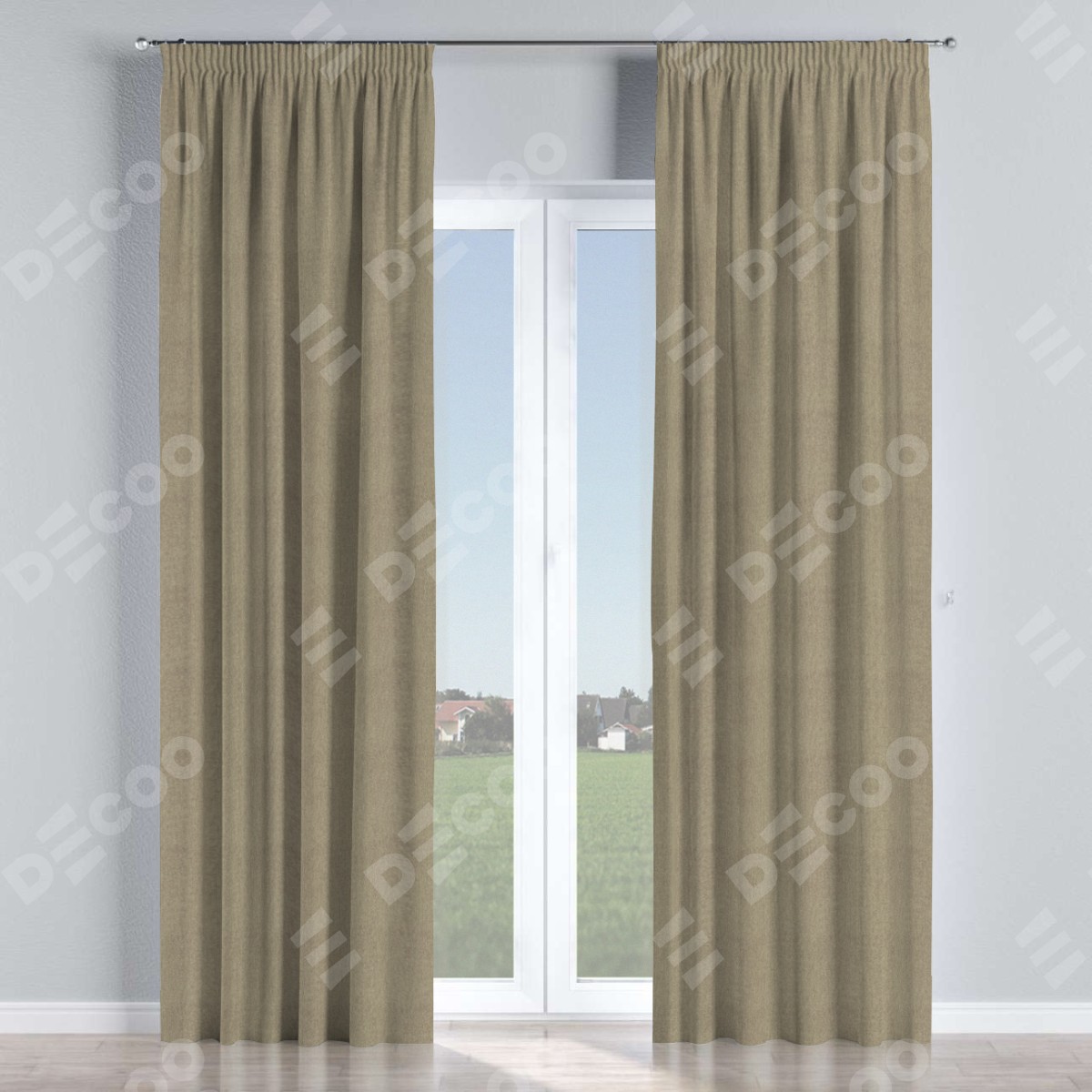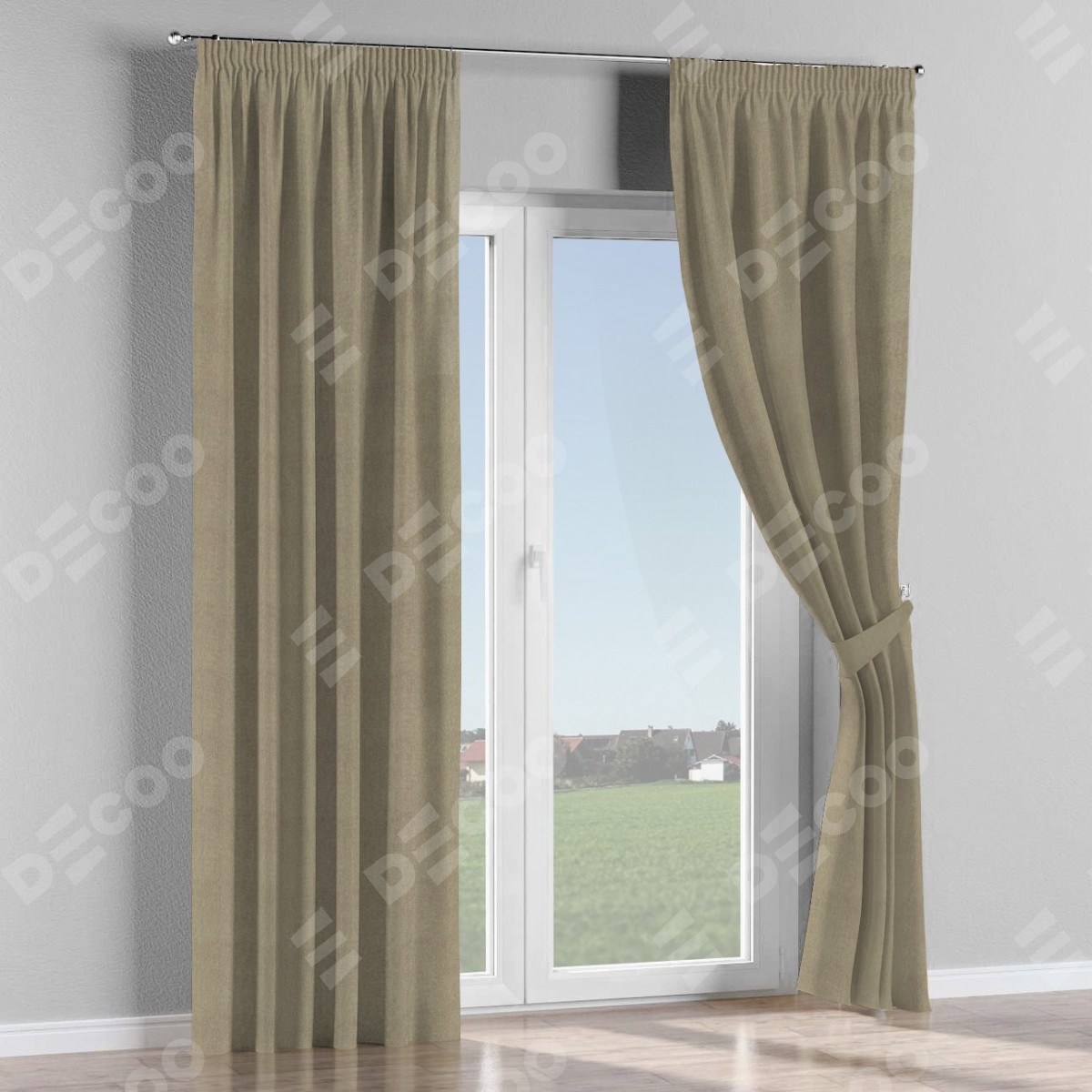 Комплект прямых штор, от производителя «Cortin», пошиты из ткани твид блэкаут кофе, артикул ткани 21575. С изнаночной стороны в верхней части штор пристрачивается шторная лента с декоративными складками «Карандаш». Для создания элегантных складок прямые шторы шьются по стандарту с коэффициентом 1:2 (на 100 см. ширины проёма 200 см. ширины ткани).
