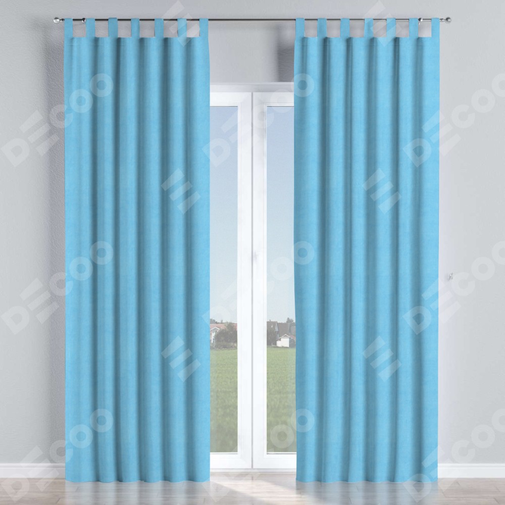 Комплект прямых штор, от производителя «Cortin», пошиты из ткани вельвет голубой, артикул ткани 85544. Данная модель пошита на петлях, комплектуется на выбор круглым карнизом и подходит для монтажа на стену или потолок. Прямые шторы на петлях шьются по стандарту с коэффициентом 1/2 (на 100 см. ширины проёма 200 см. ширины ткани), отличительным преимуществом данной модели является простой способ монтажа. Достаточно повесить ее на трубу и штора готова!