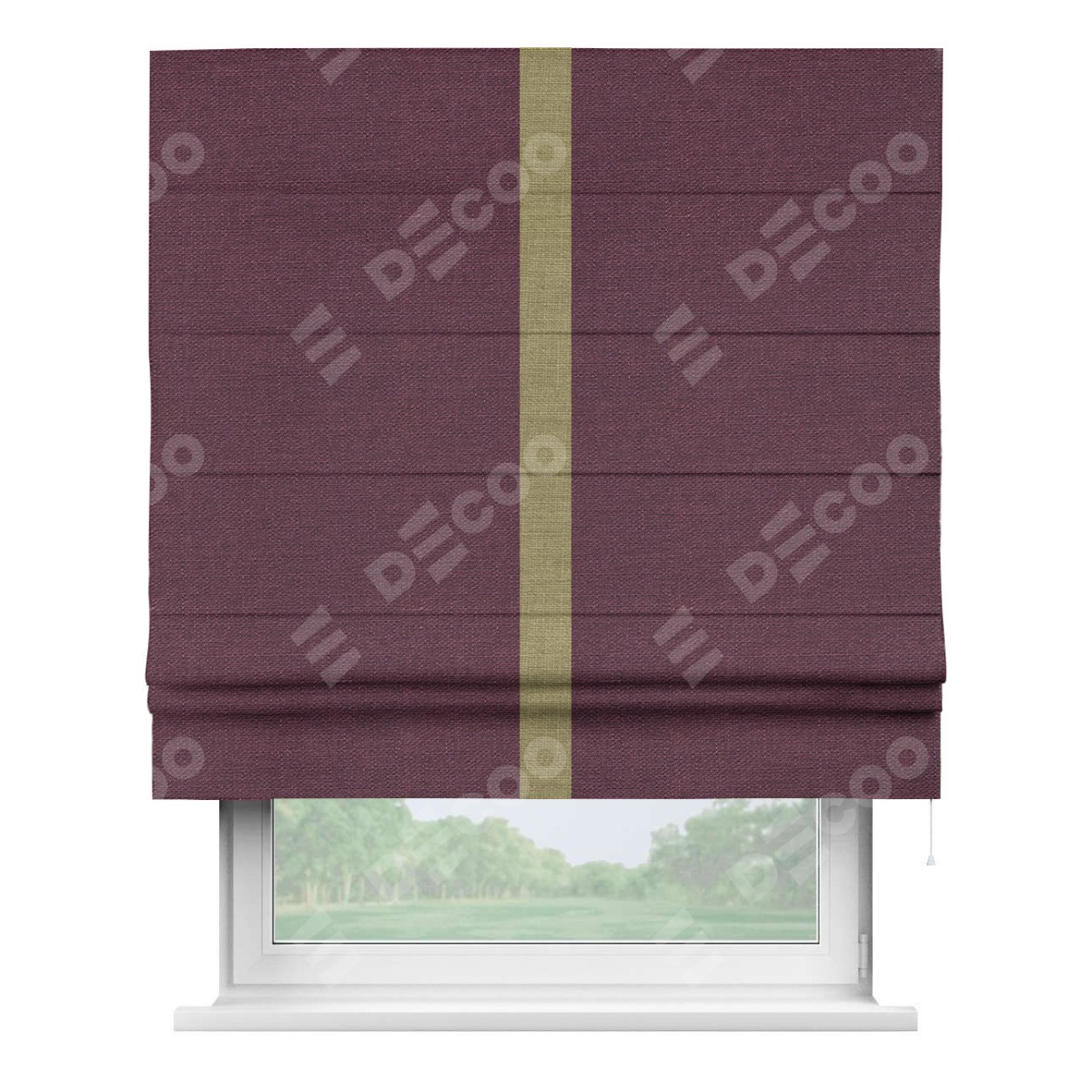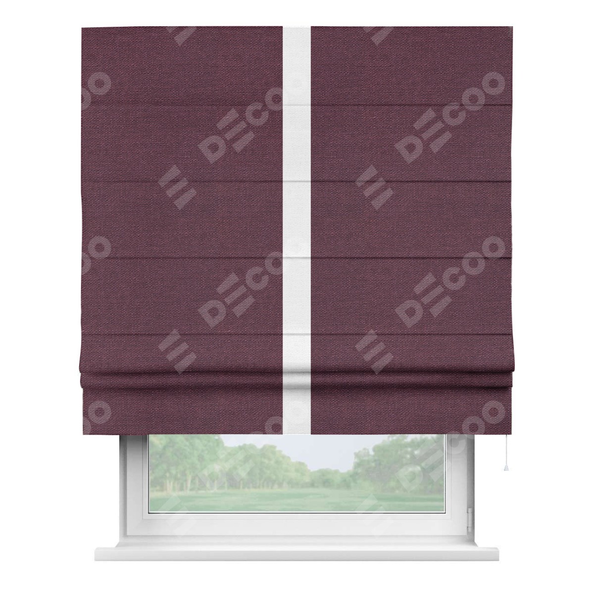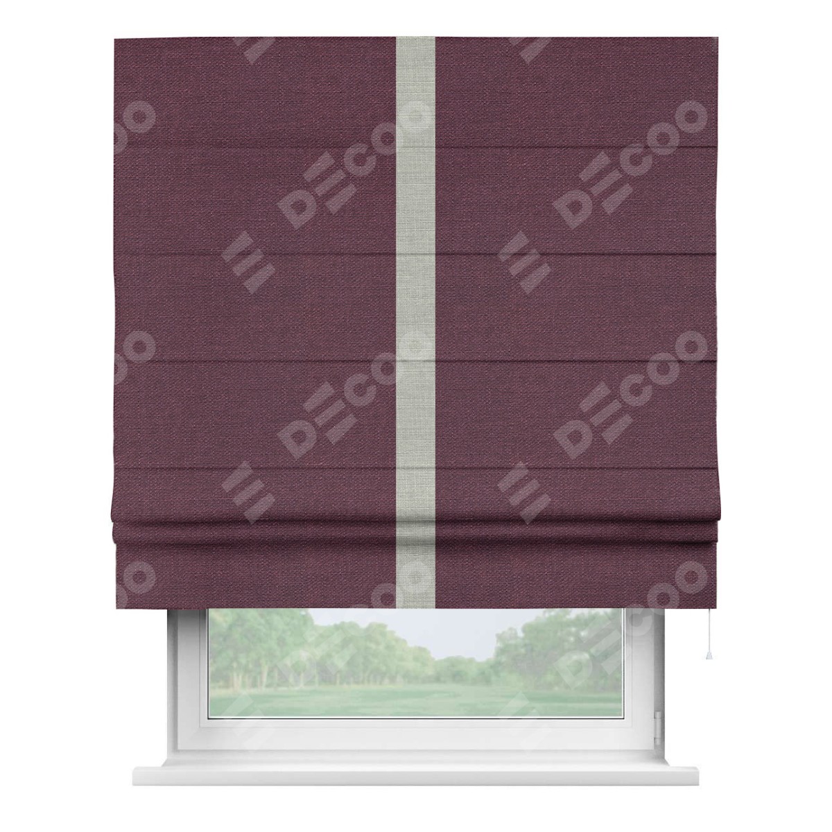 Римская штора производителя «Cortin», используется для проёма, пошита из ткани лён фиолетовый, артикул 85907. Отделка шторы кантом «Хайвэй», ткань для канта используется из льна разной расцветки на выбор. Имеет универсальный механизм и подходит для монтажа: на потолок, на стену и в нишу.