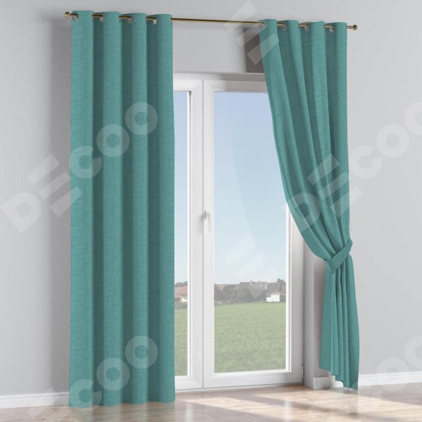 Комплект прямых штор, от производителя «Cortin», пошиты из ткани лён бирюза, артикул ткани 7446. Данная модель пошита на люверсах, комплектуется на выбор круглым карнизом и подходит для монтажа на стену или потолок. Прямые шторы на люверсах шьются по стандарту с коэффициентом 1/2 (на 100 см. ширины проёма 200 см. ширины ткани), отличительным преимуществом данной модели является простой способ монтажа. Достаточно повесить ее на трубу и штора готова!