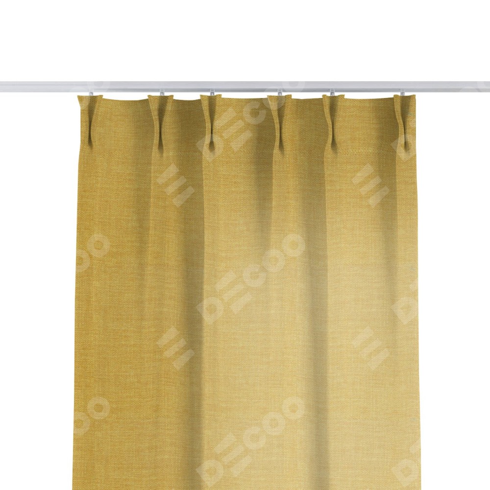 Комплект прямых штор, от производителя «Cortin», пошиты из ткани лён горчичный, артикул ткани 74740. С изнаночной стороны в верхней части штор пристрачивается шторная лента с декоративными складками «Кустик». Для создания элегантных складок прямые шторы шьются по стандарту с коэффициентом 1:2 (на 100 см. ширины проёма 200 см. ширины ткани).