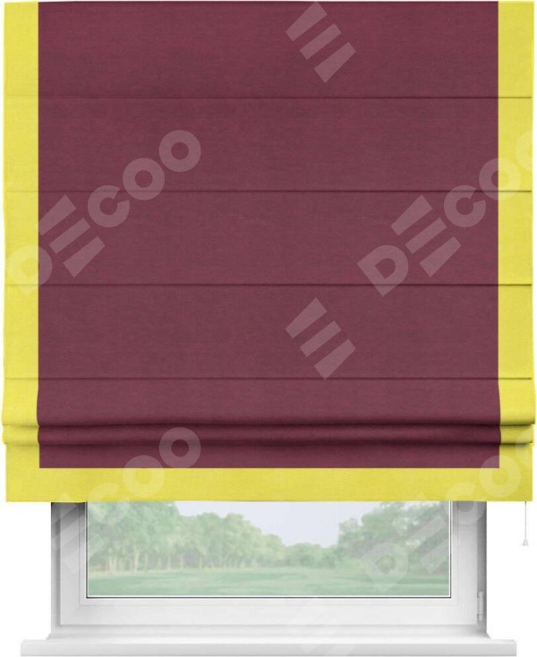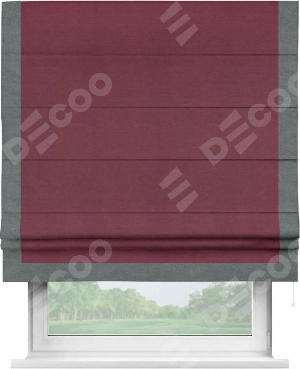 Римская штора «Кортин» с кантом Виктория, для проема, ткань вельвет бордовый